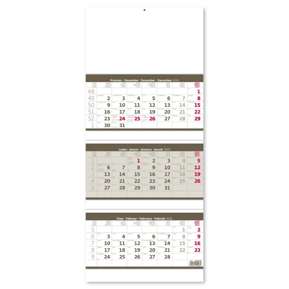 Rozsah kalendáře: 3 x 12 listů