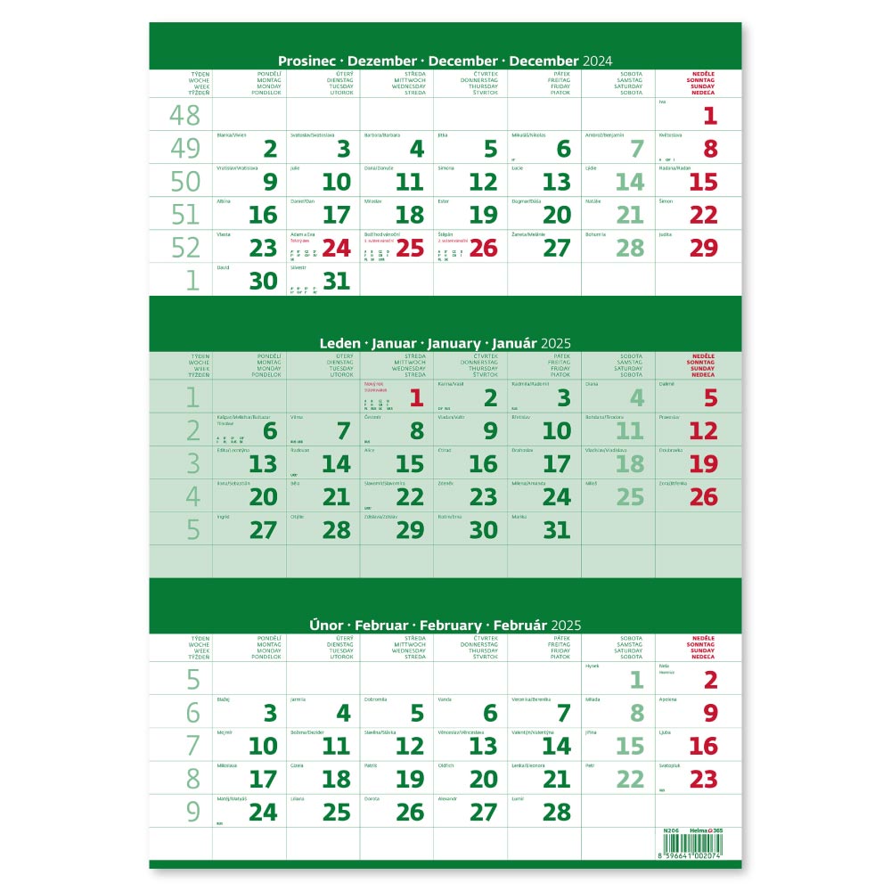 Nástěnný kalendář 2025 - Tříměsíční zelený