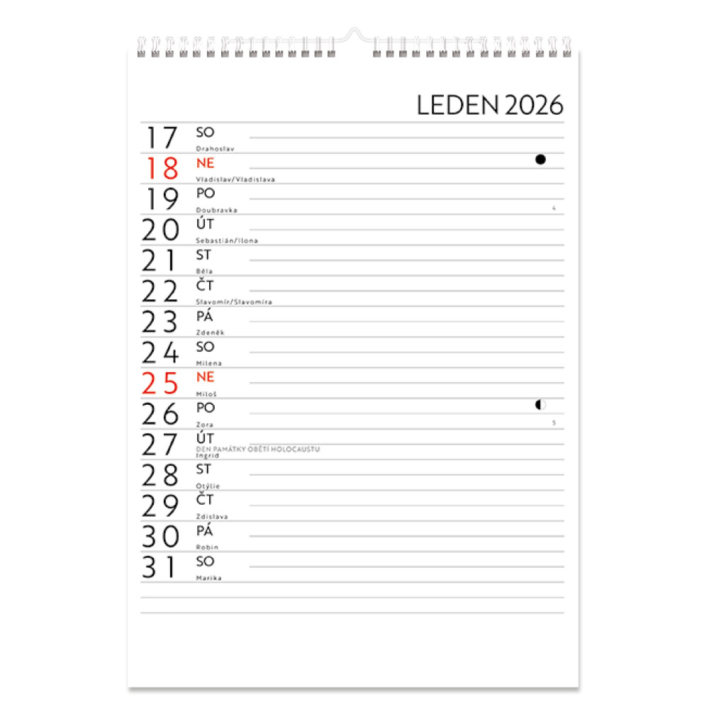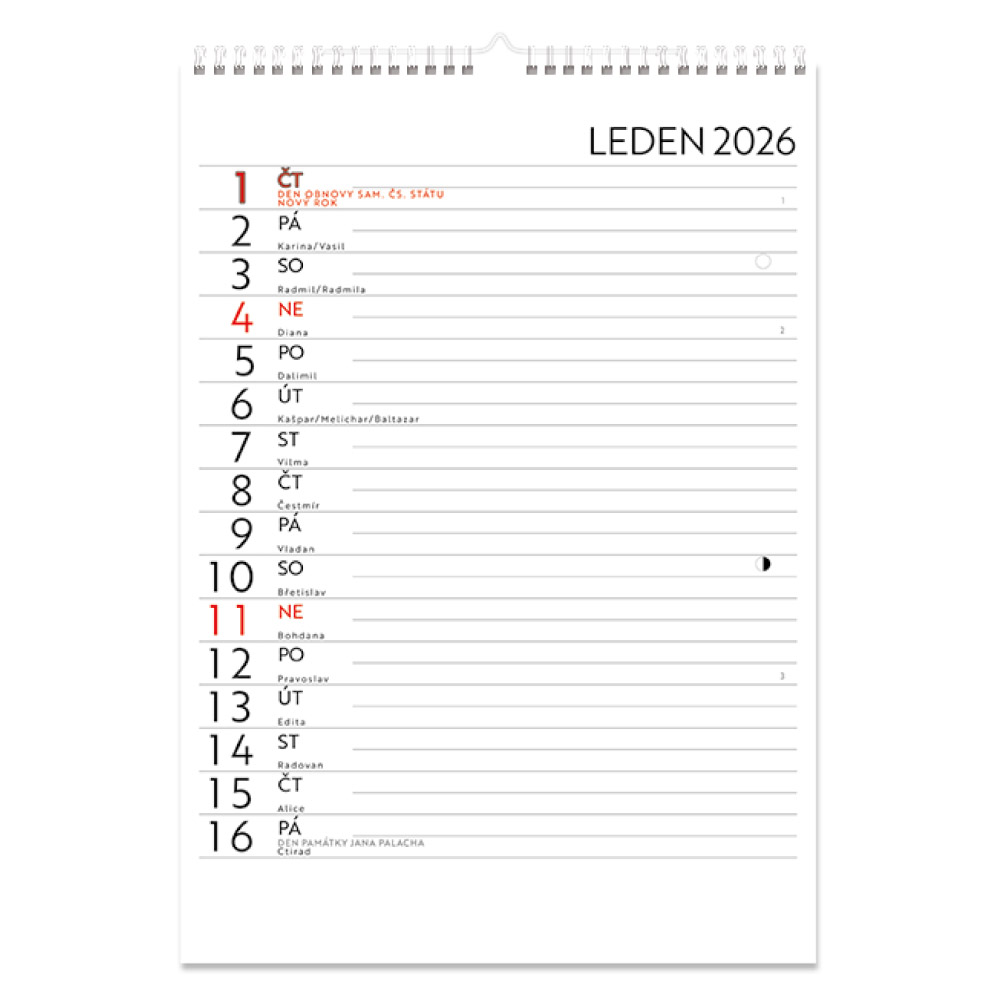 Nástěnný kalendář 2026 český Čtrnáctidenní