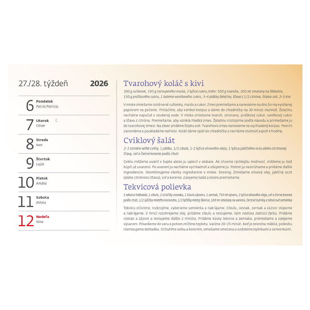 Kalendárium: Slovenské týdenní řádkové jmenné