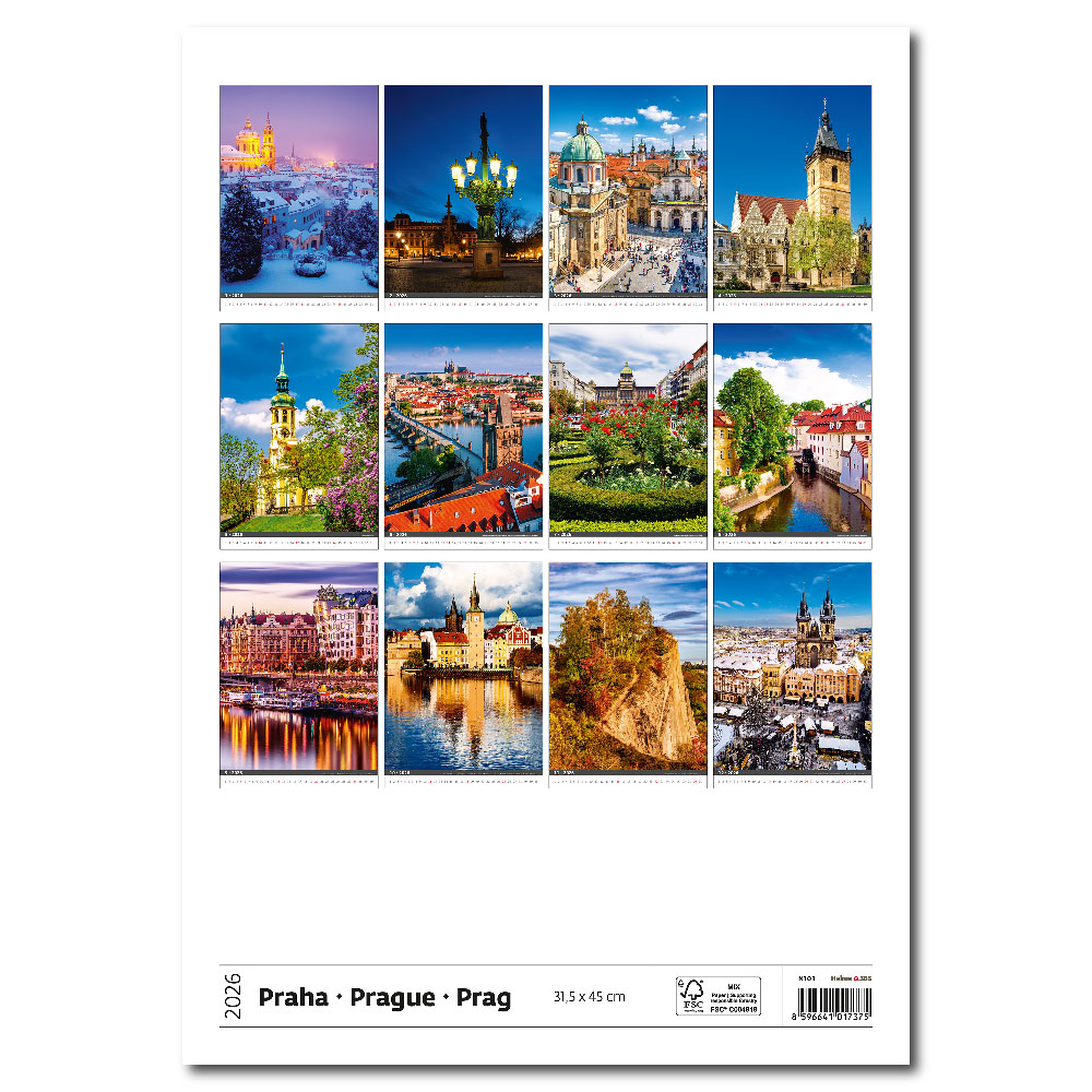 Nástěnný kalendář 2026 - Praha/Prague/Prag