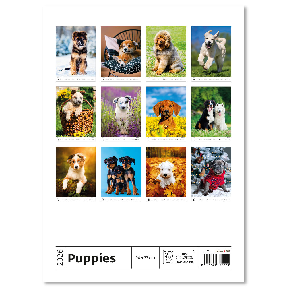 Nástěnný kalendář 2026 - Puppies/Welpen/Štěňátka/Šteniatka