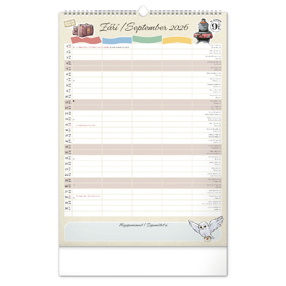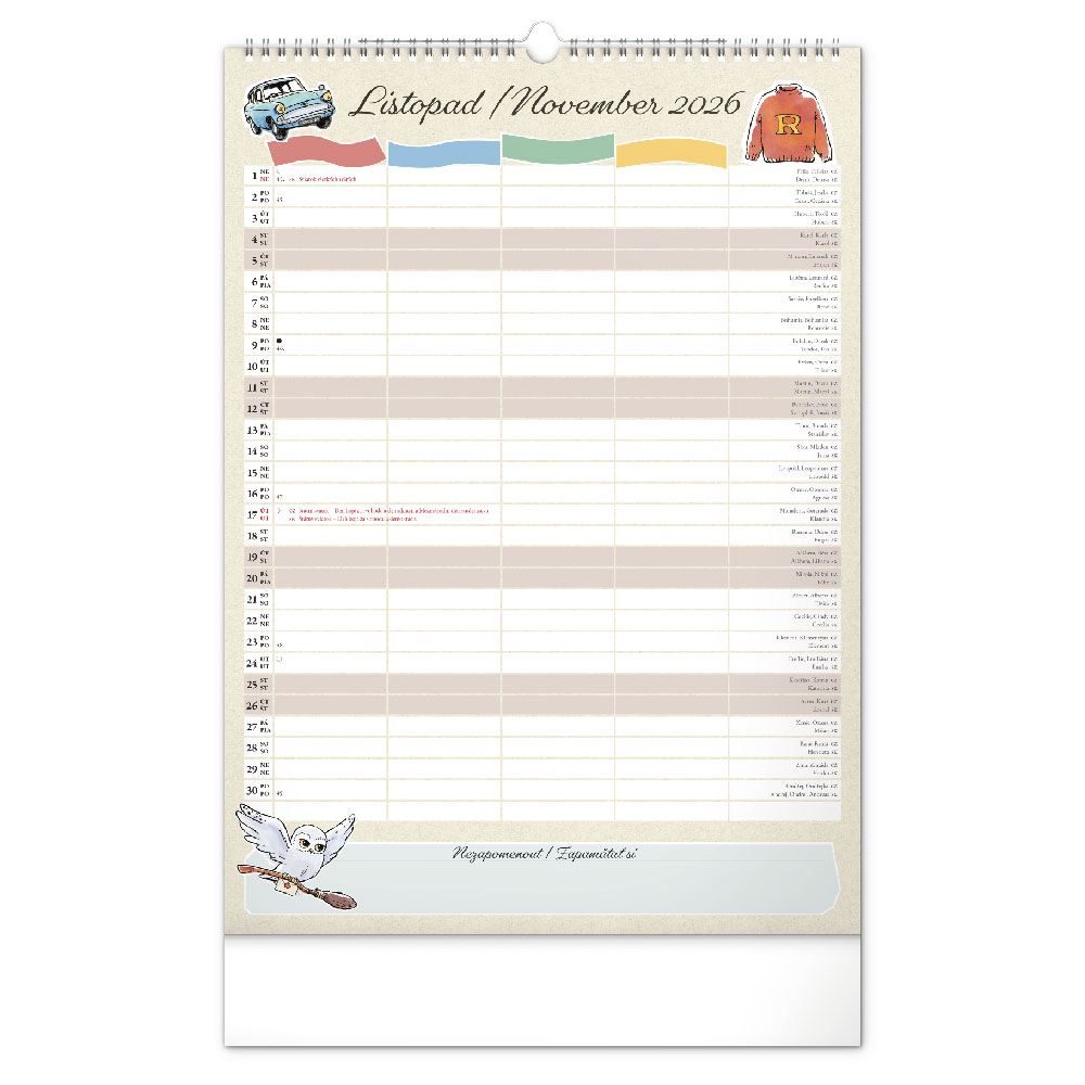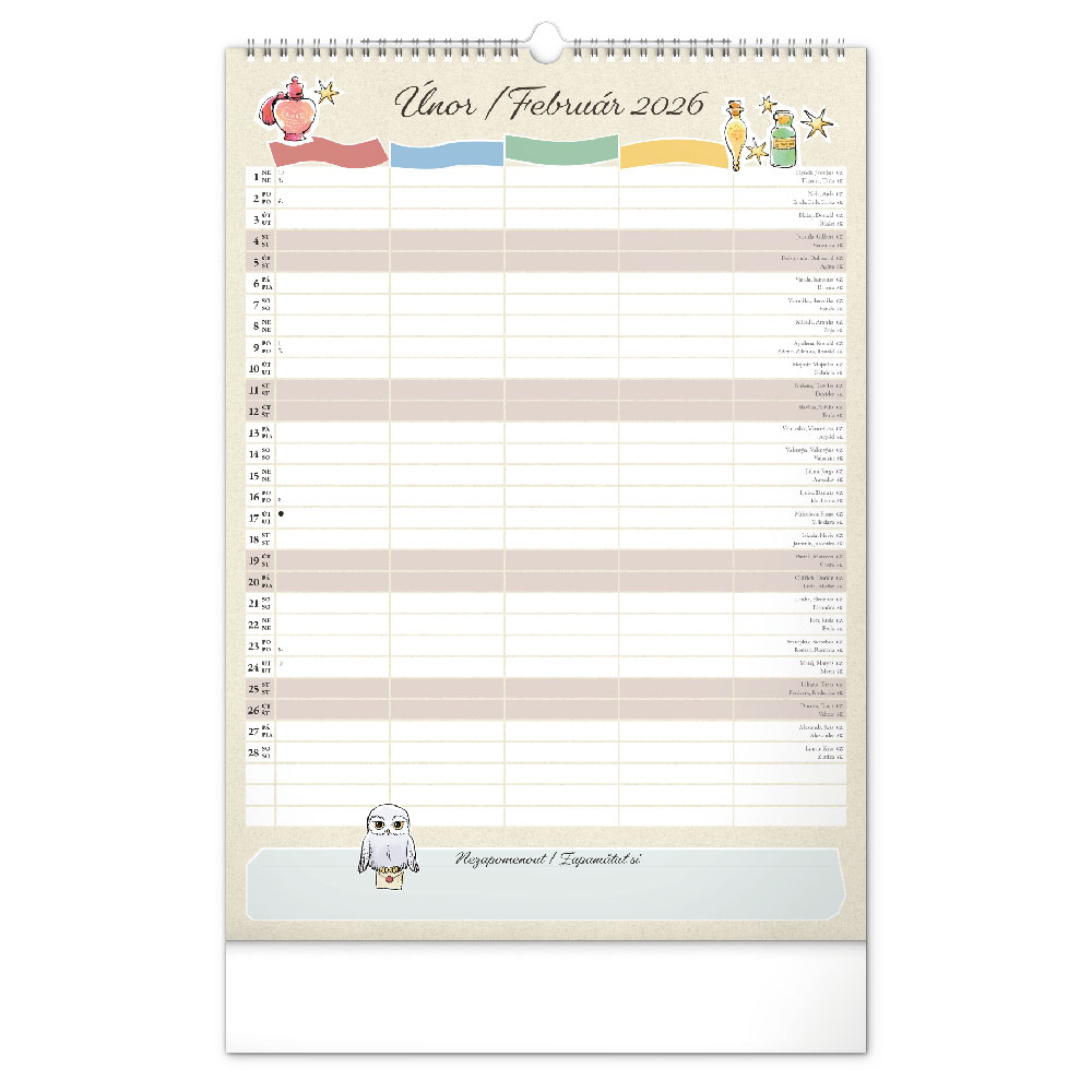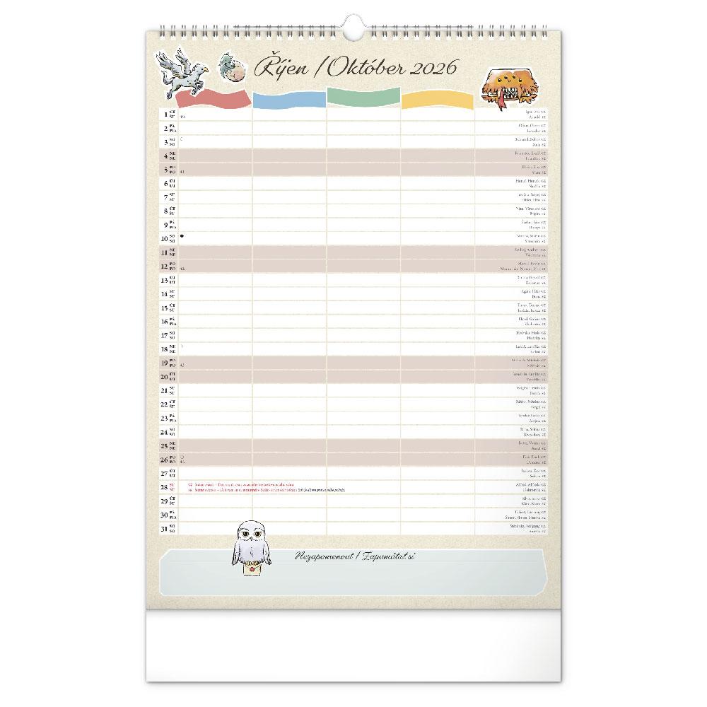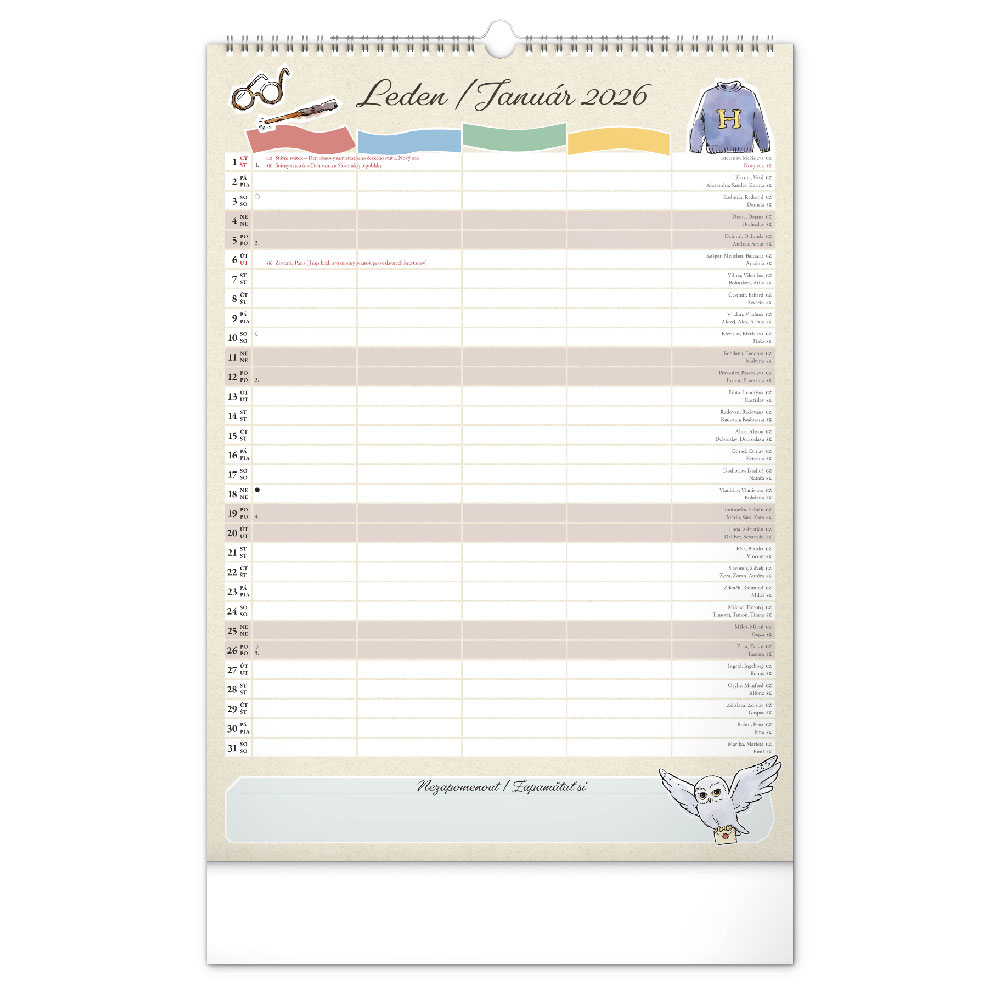 Nástěnný kalendář 2026 Rodinný plánovací Harry Potter