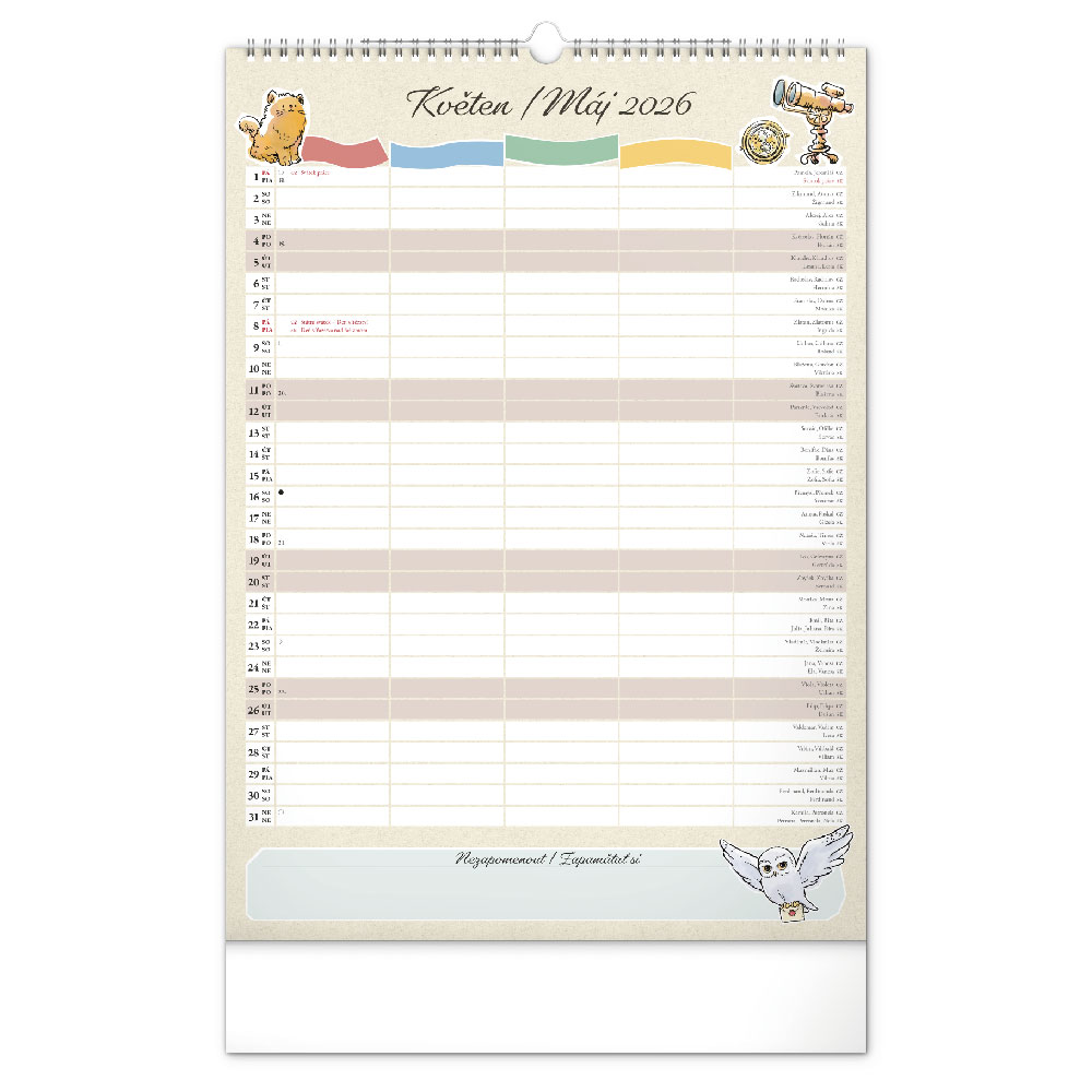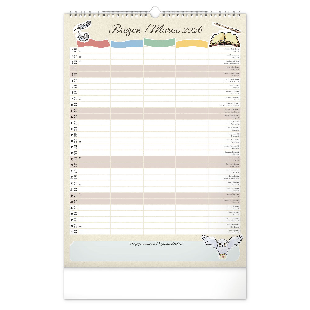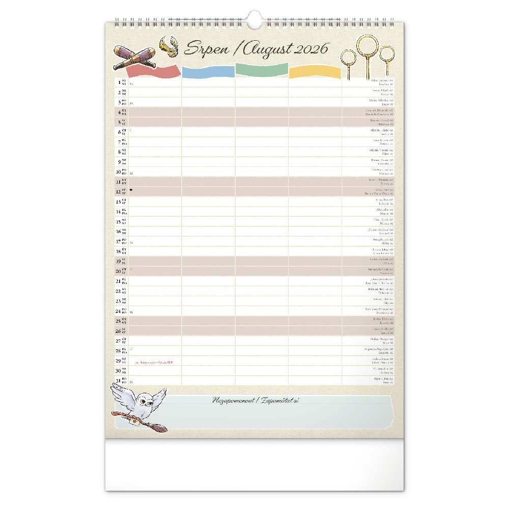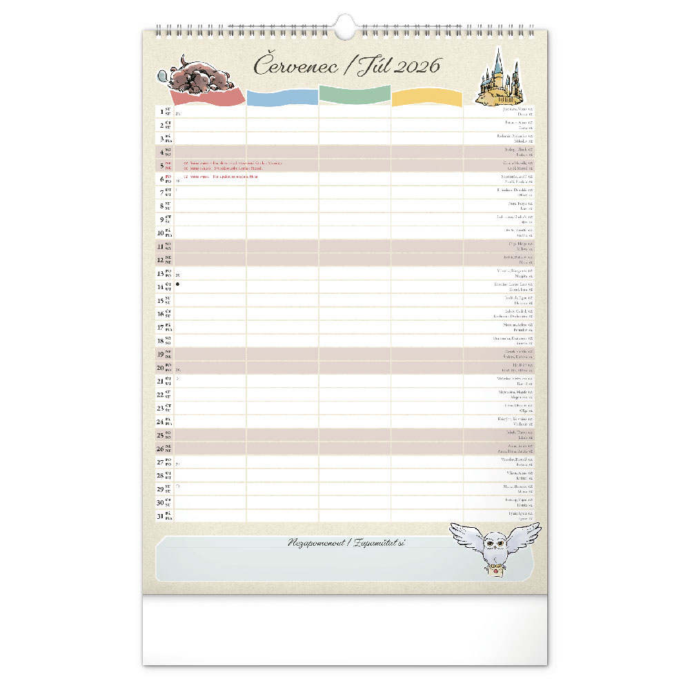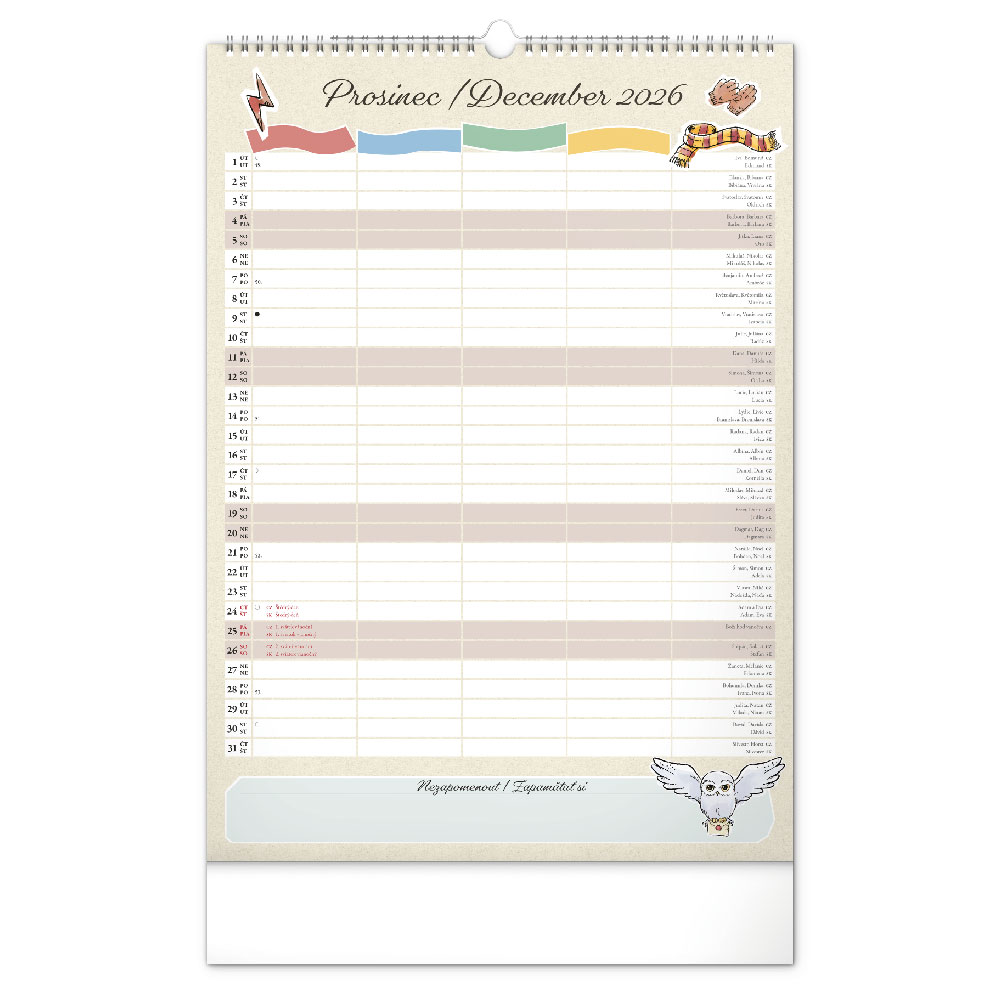 Nástěnný kalendář 2026 Rodinný plánovací Harry Potter