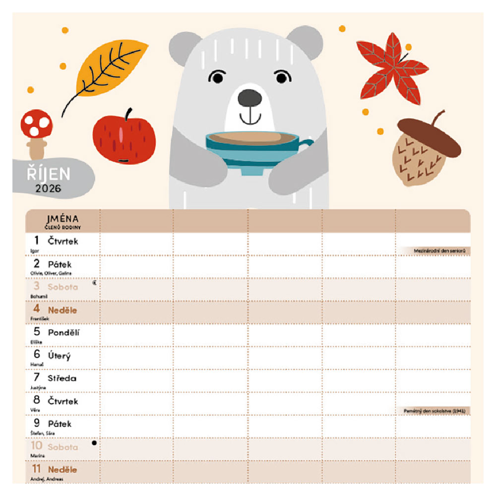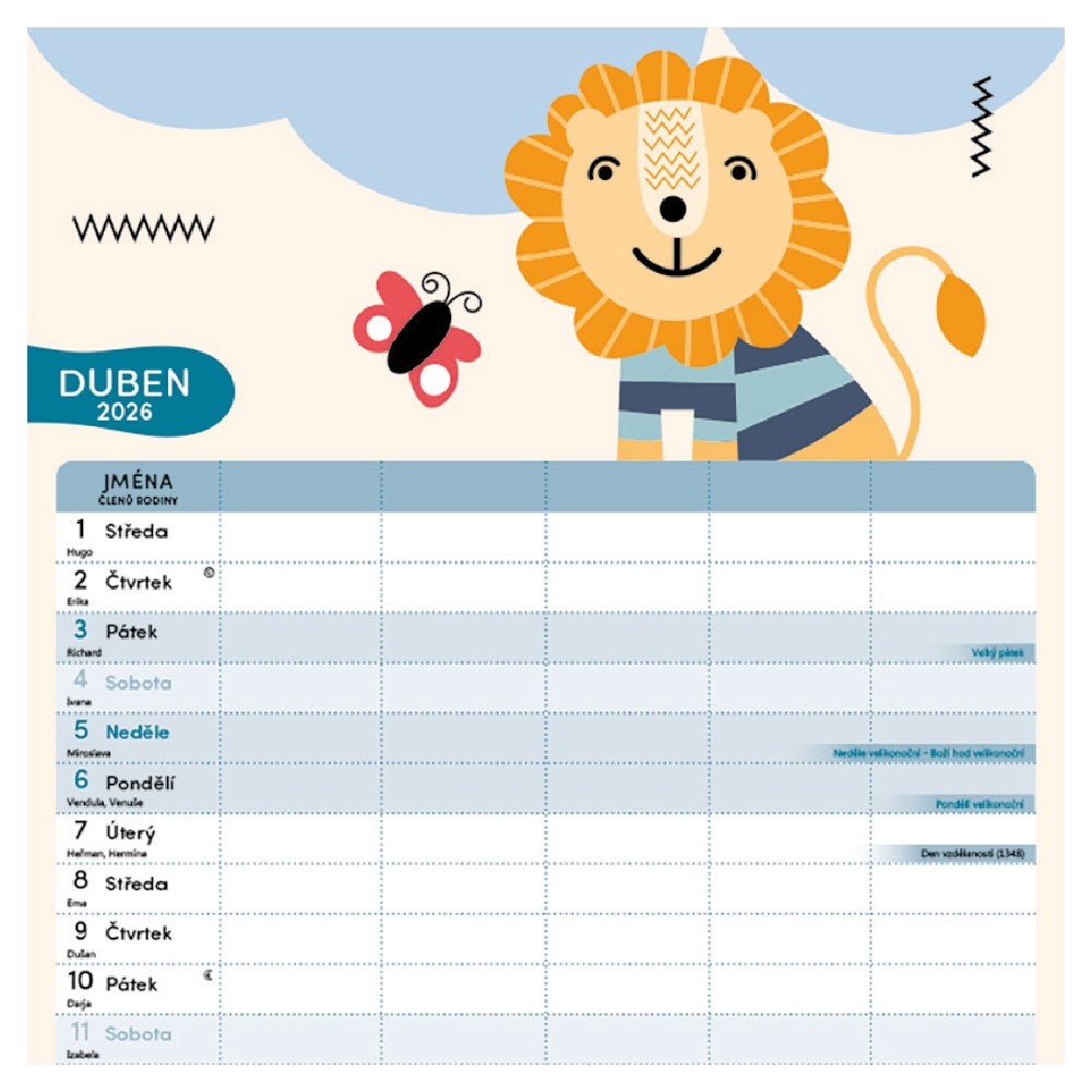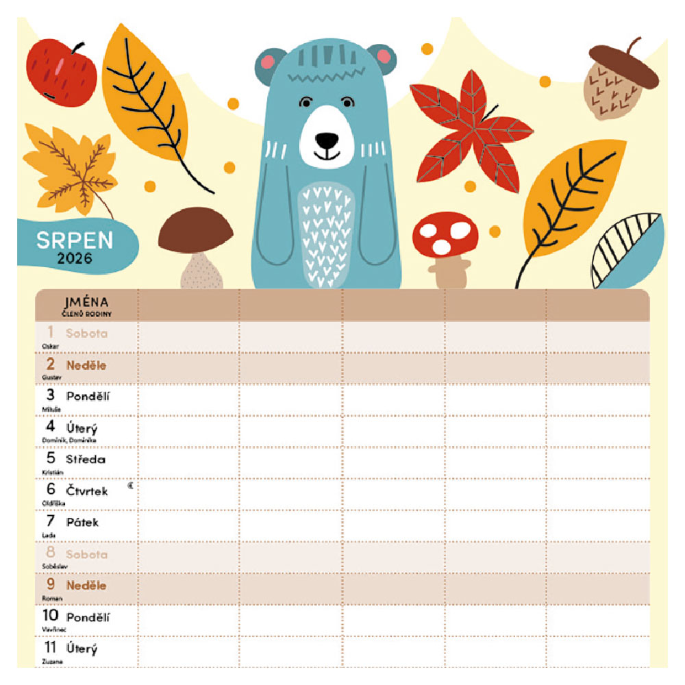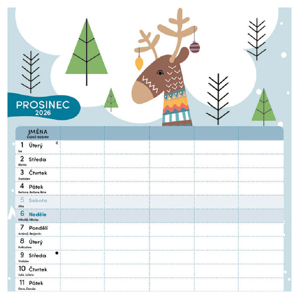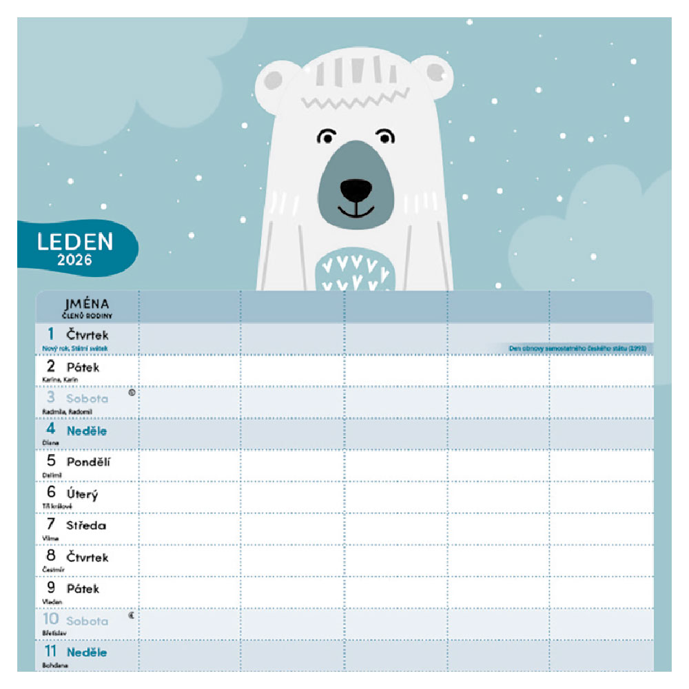 Nástěnný kalendář 2026 Rodinný plánovací kalendář