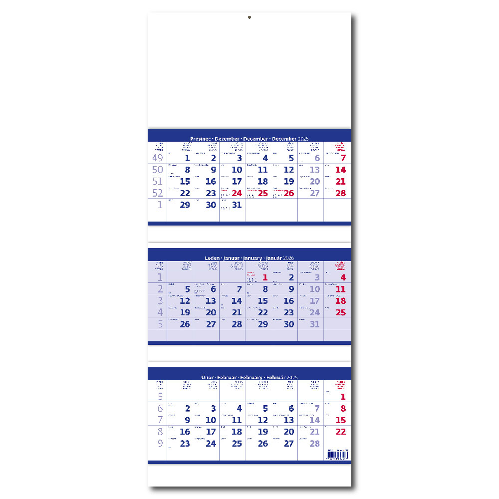 Nástěnný kalendář 2026 - Tříměsíční skládaný modrý