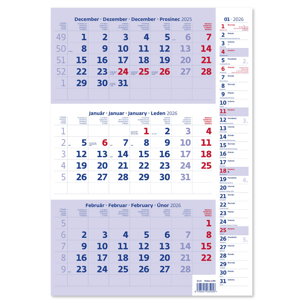 Kalendárium: SK 3měsíční jmenné se svátky vybraných evropských států