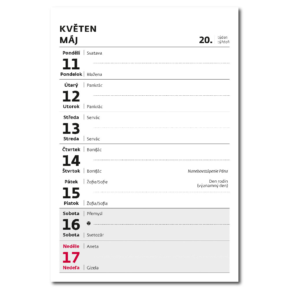 Kalendárium: české/slovenské týdenní jmenné