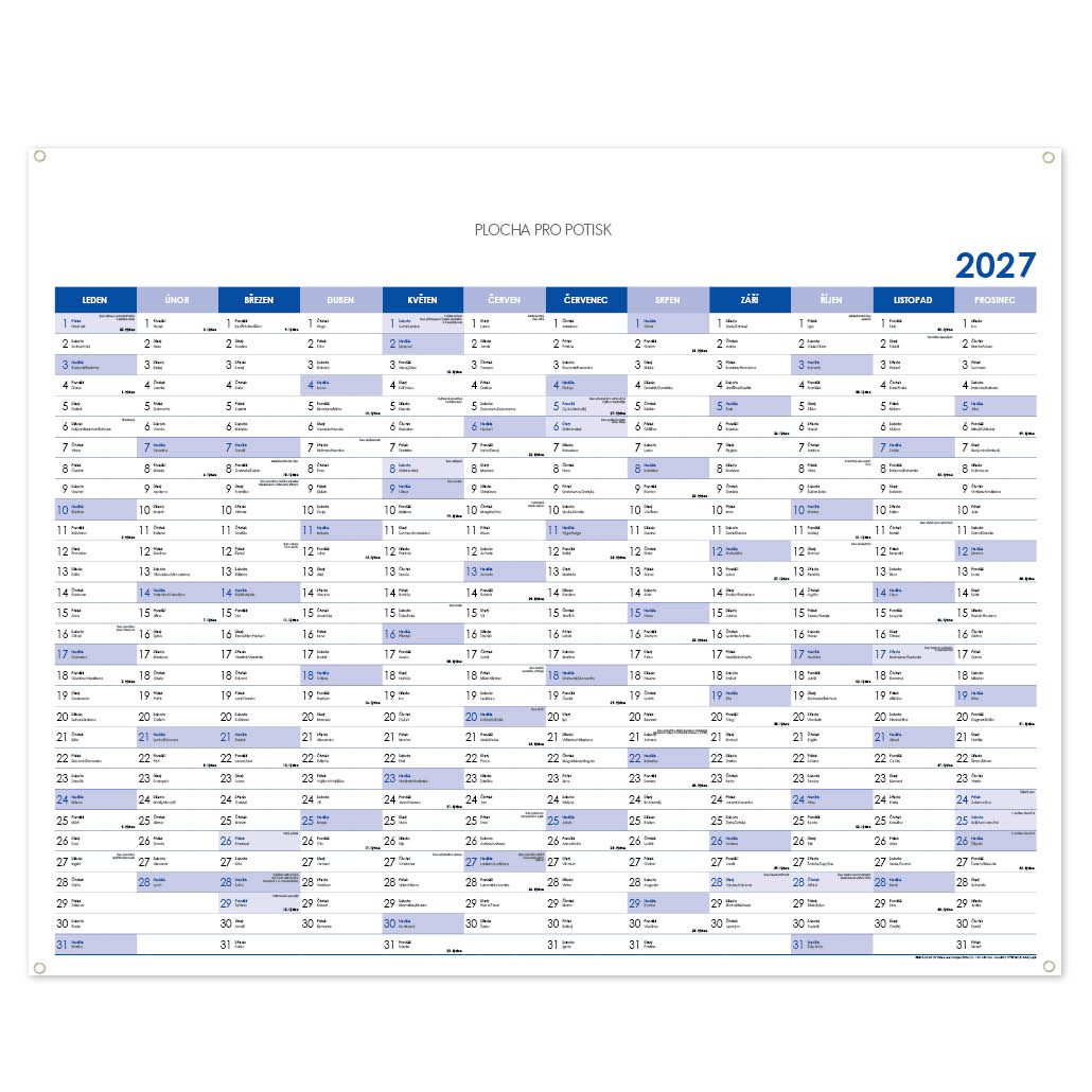 Nástěnný kalendář Plánovací mapa 2027 CZ s očky na zavěšení - 100 x 80 cm - modrá