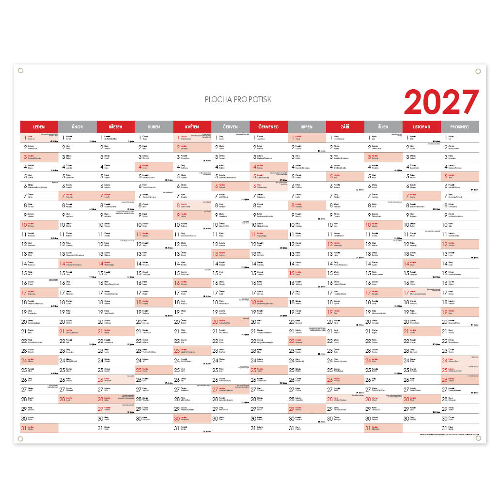 Nástěnný kalendář Plánovací mapa 2027 CZ s očky na zavěšení - 124 x 100 cm - červená