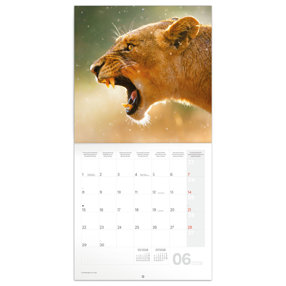 Nástěnný poznámkový kalendář 2026 Divoká zvířata