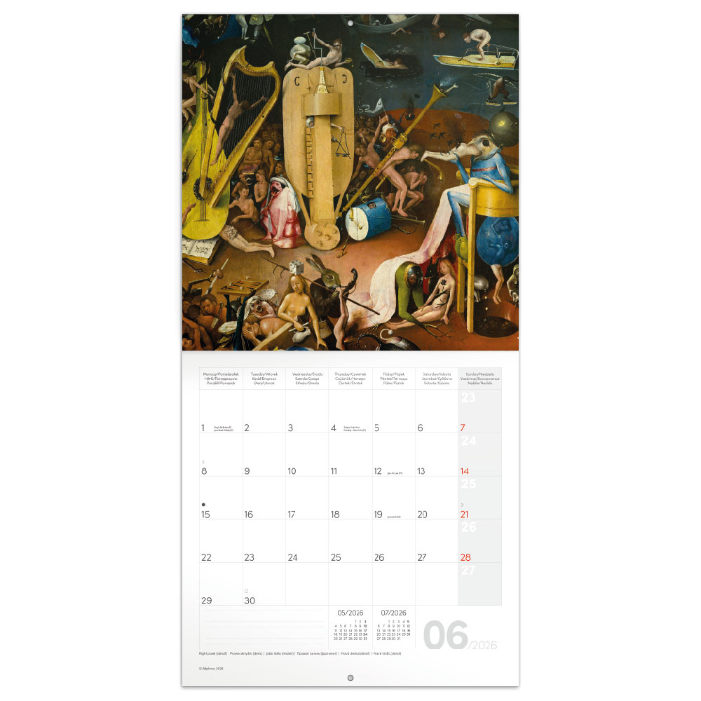 Nástěnný poznámkový kalendář 2026 Hieronymus Bosch