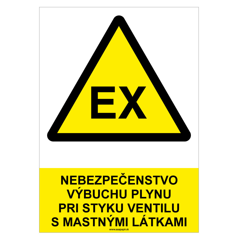 Nebezpečenstvo výbuchu plynu pri styku ventilu s mastnými látkami-bezpečnostná tabuľka, plast A4, 2mm