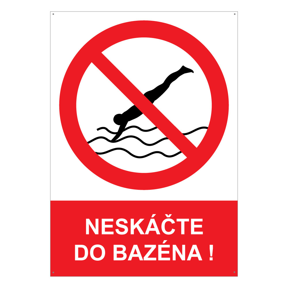 Neskáčte do bazéna! - bezpečnostná tabuľka s dierkami, plast A5, 2 mm