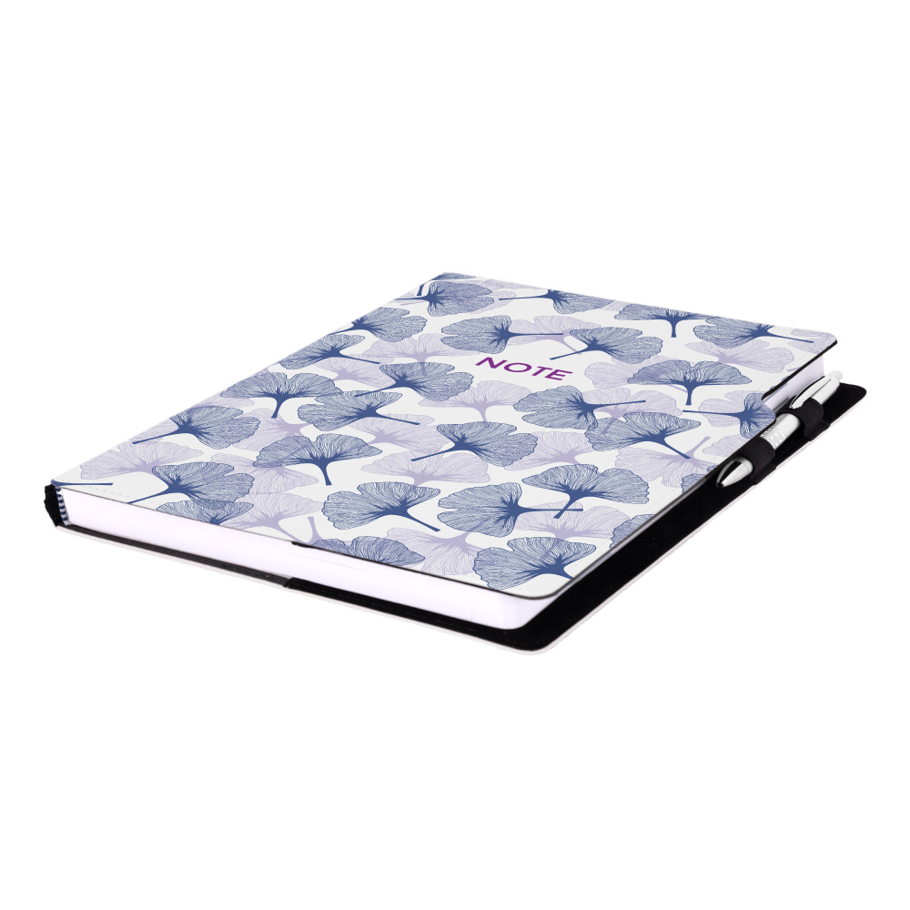 Součástí notesu je poutko na propisku a kovová propiska.