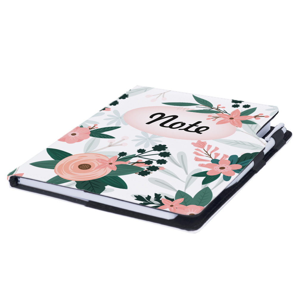 Součástí notesu je poutko na propisku a kovová propiska.