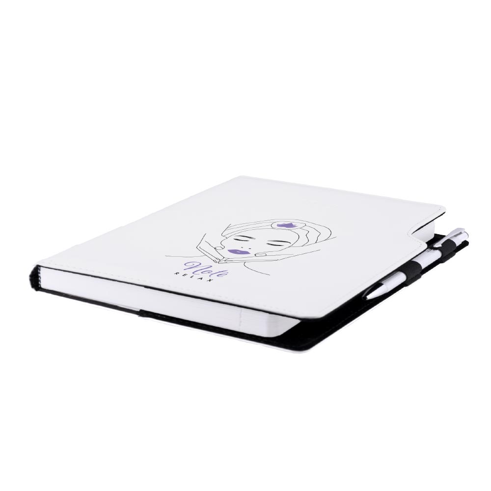 Součástí notesu je poutko na propisku a kovová propiska.