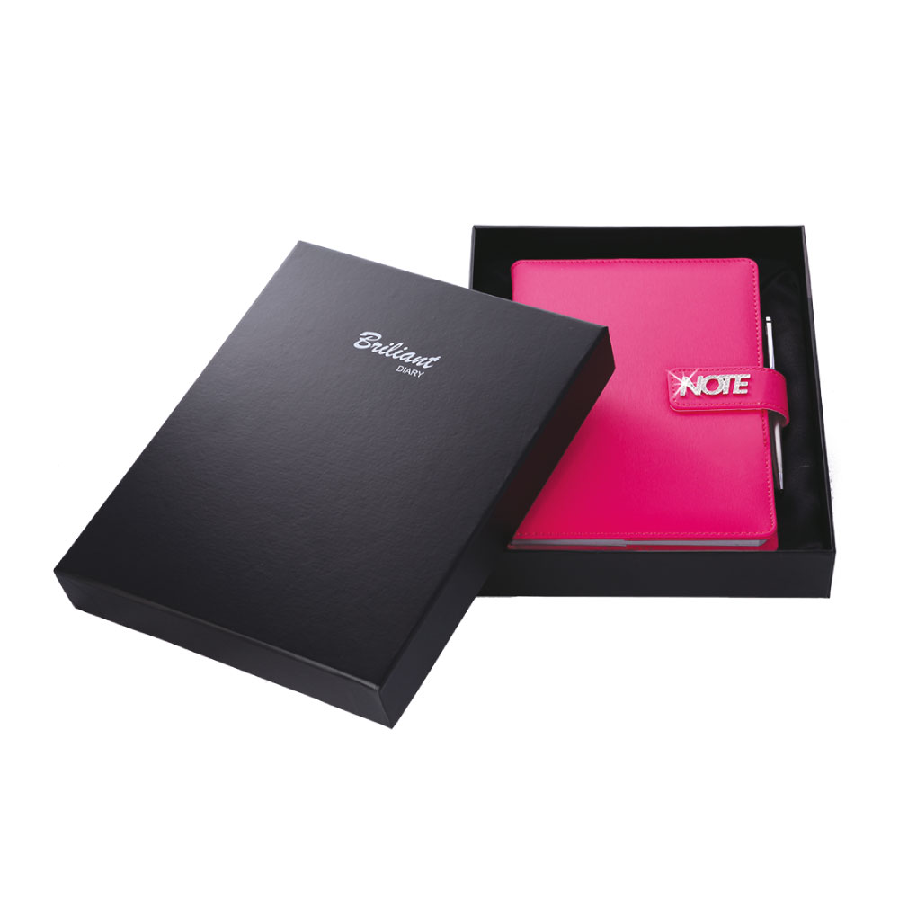 Notes je balen v dárkové krabičce vystlané saténem.