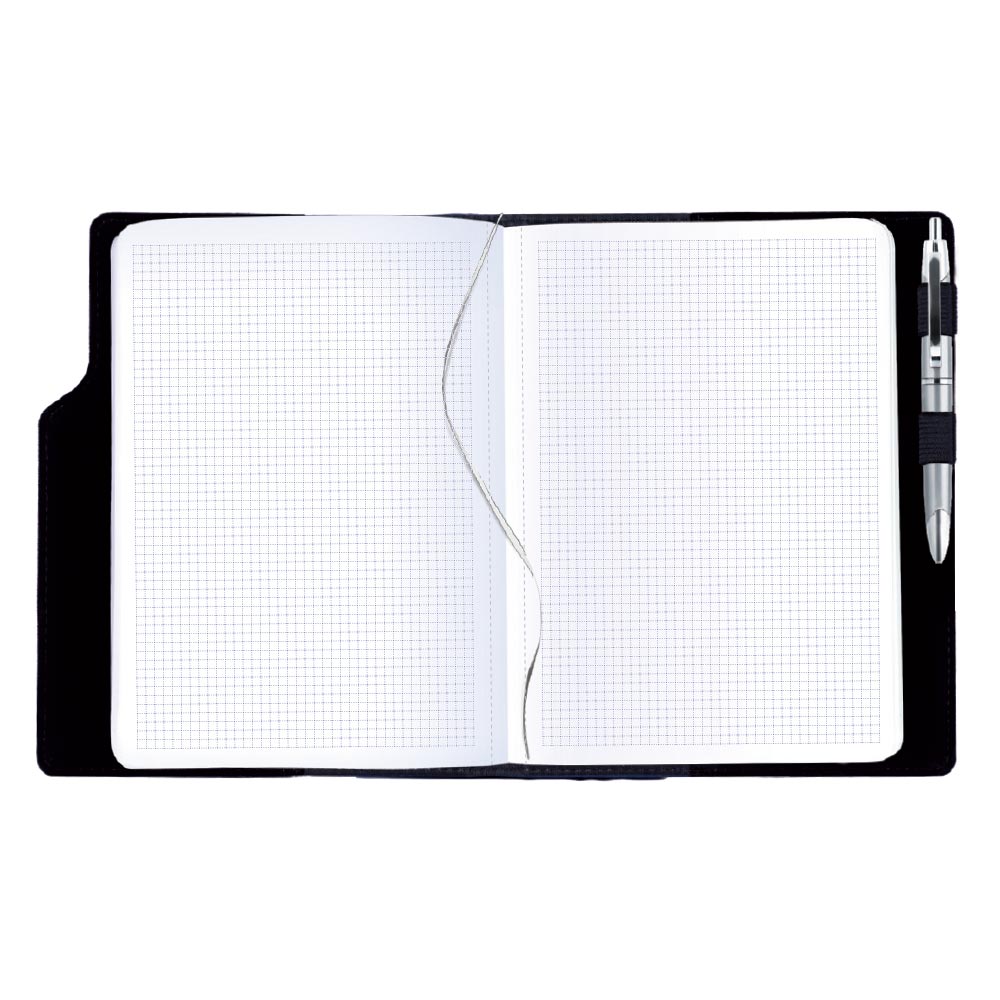 Součástí notesu je poutko na propisku a kovová propiska.