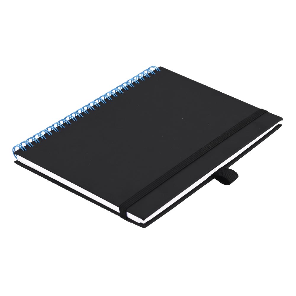 Notes - zápisník koženkový SIMPLY A5 linkovaný - černá/světle modrá spirála