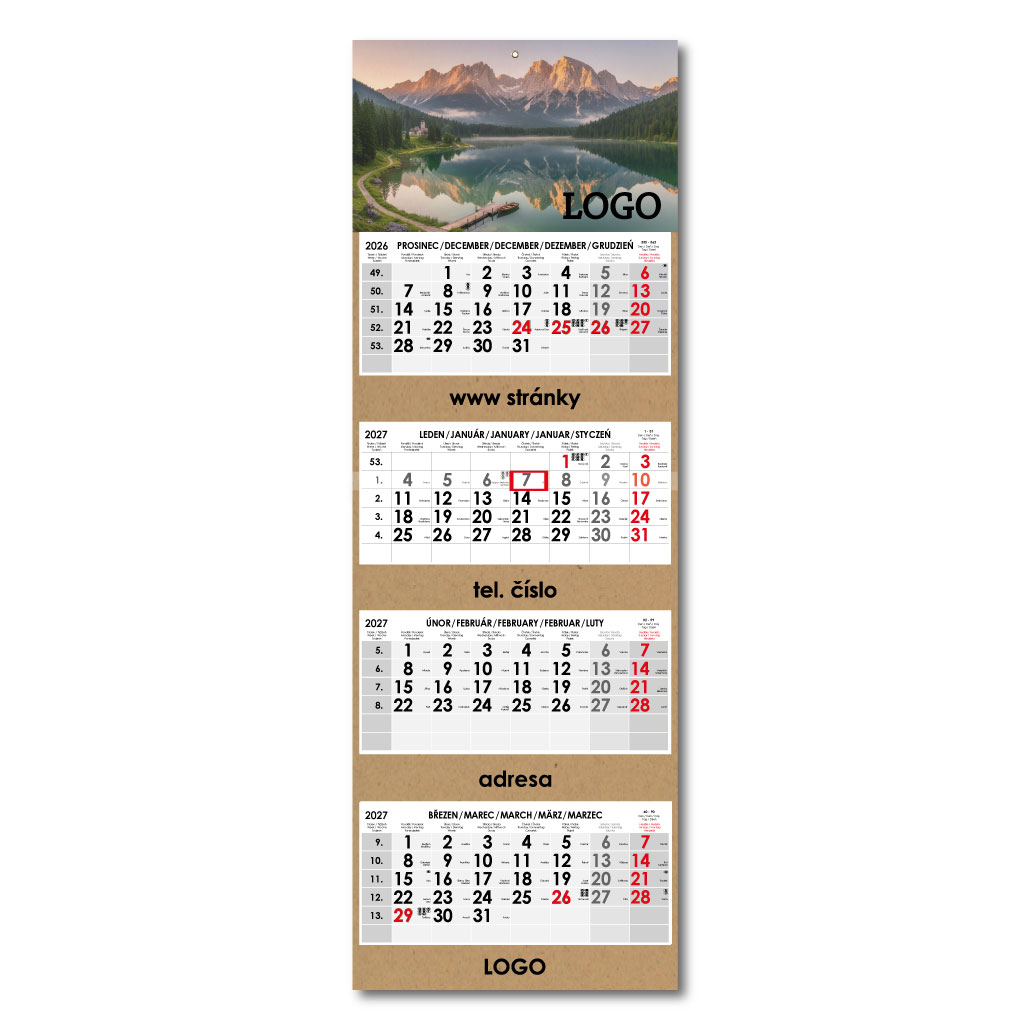 Pětiměsíční kalendář Kvinto Kraft skládaný český 2027 - šedý