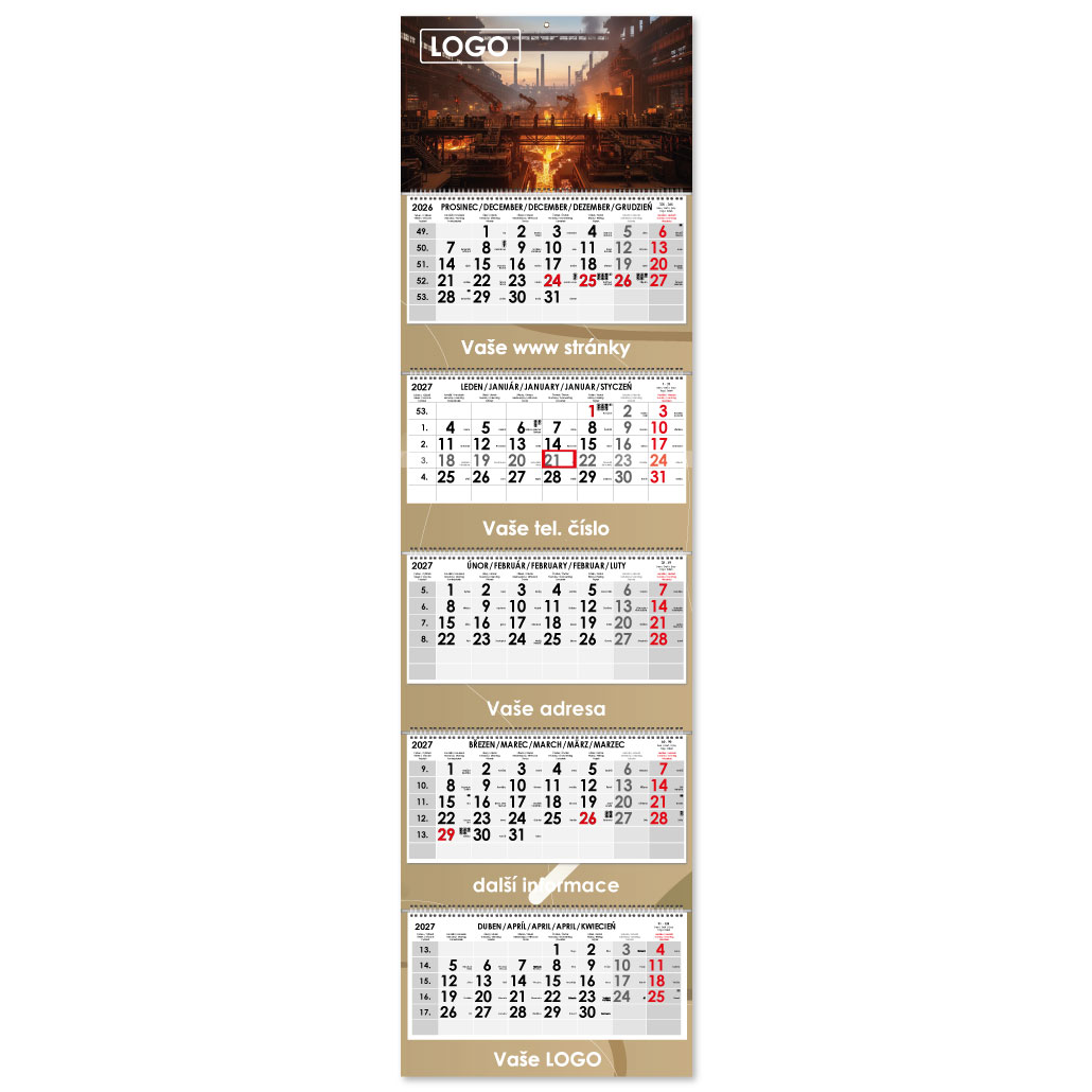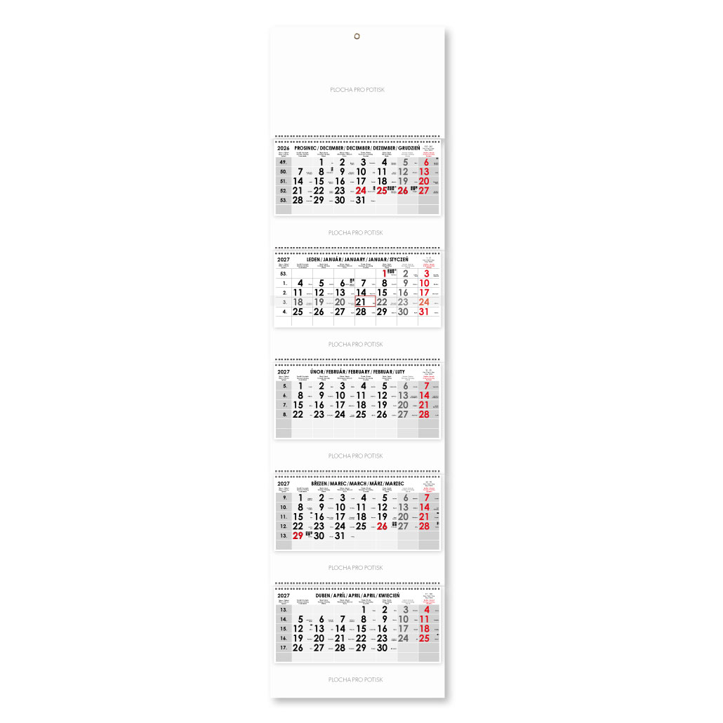 Formát kalendária: 295 x 135 mm