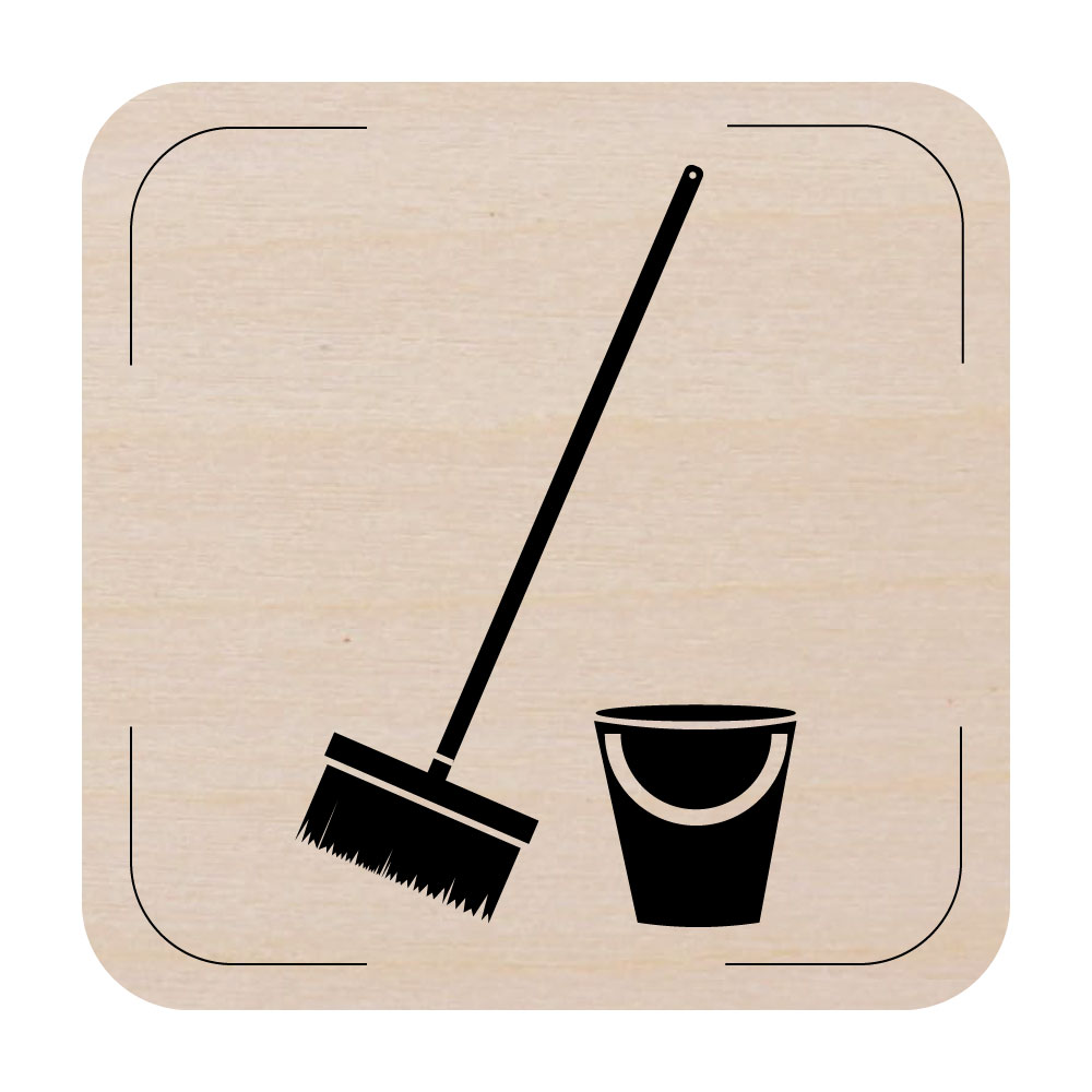 Popis místnosti - cedulka na dveře - Uklidová místnost - piktogram, dřevěná tabulka, 80 x 80 mm