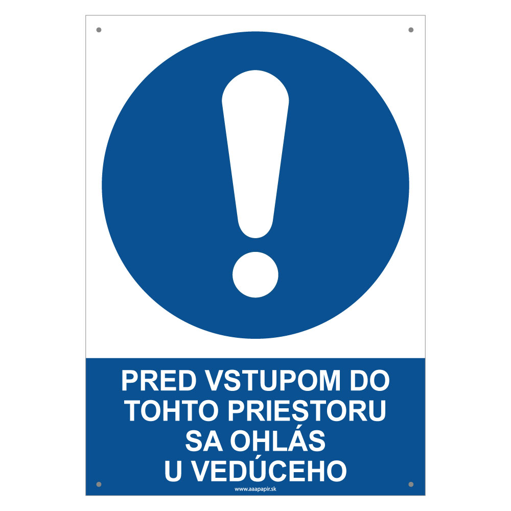 Pred vstupom do tohto priestoru sa ohlás u vedúceho - bezpečnostná tabuľka s dierkami, plast 2 mm - A4