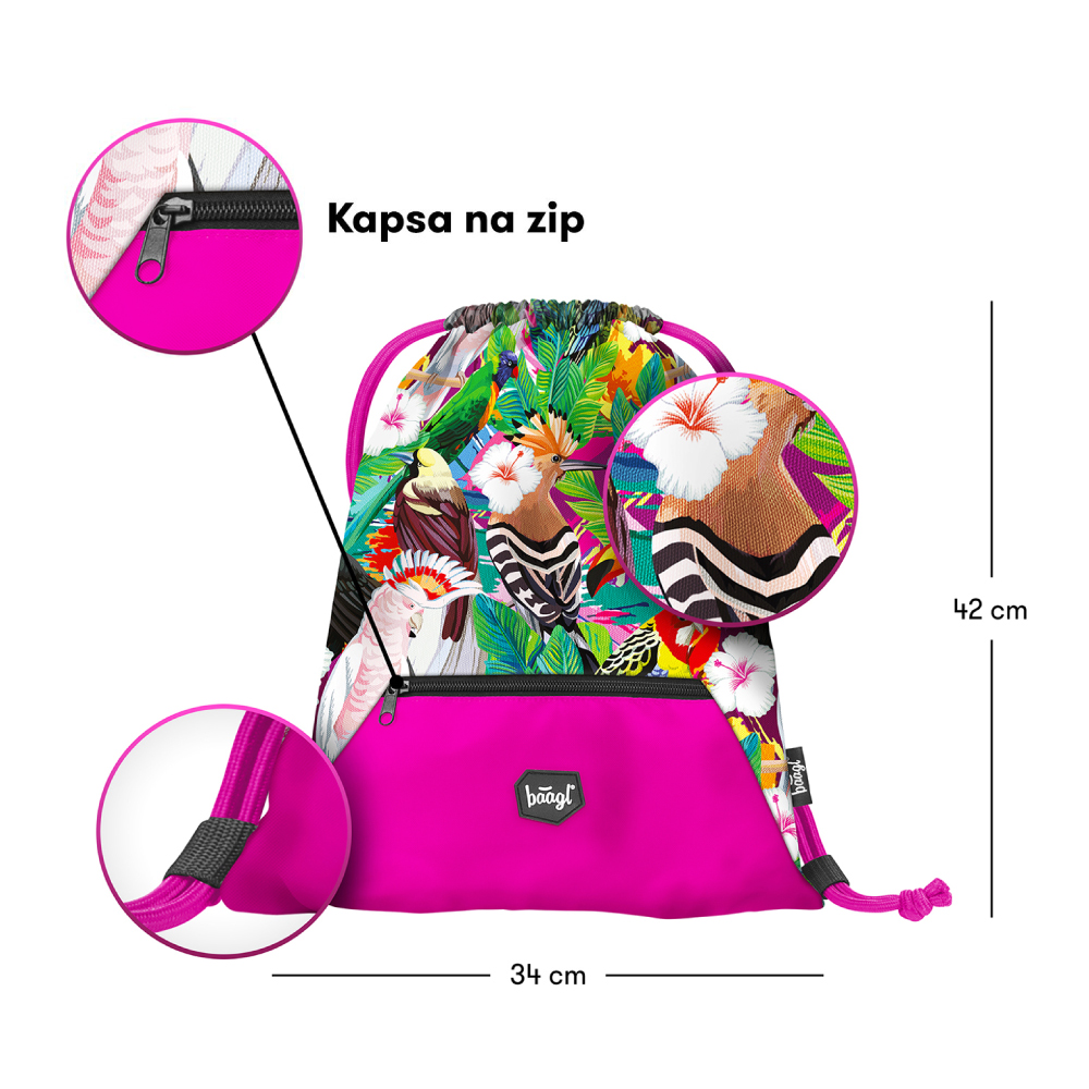 • Sáček je vyroben z pevného omyvatelného materiálu a v jeho dolní části je umístěna praktická kapsička na zip.