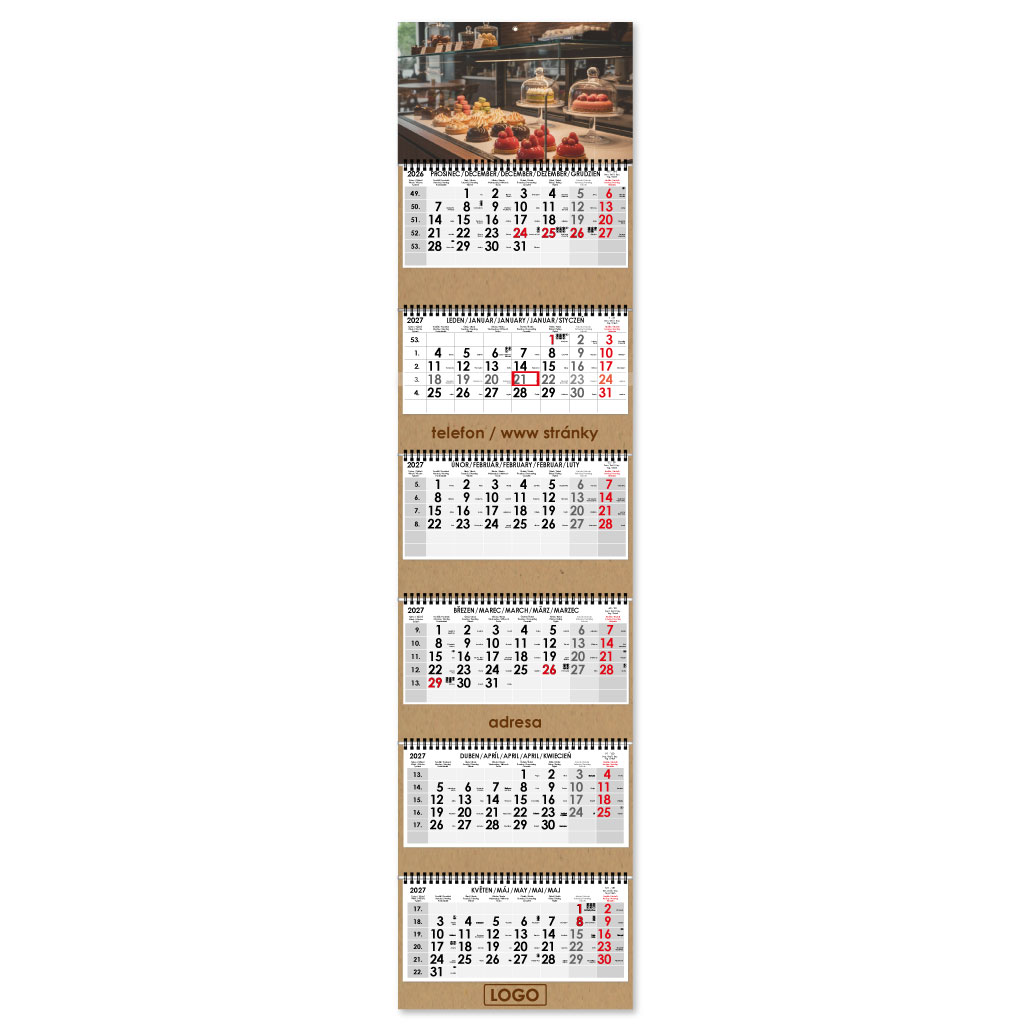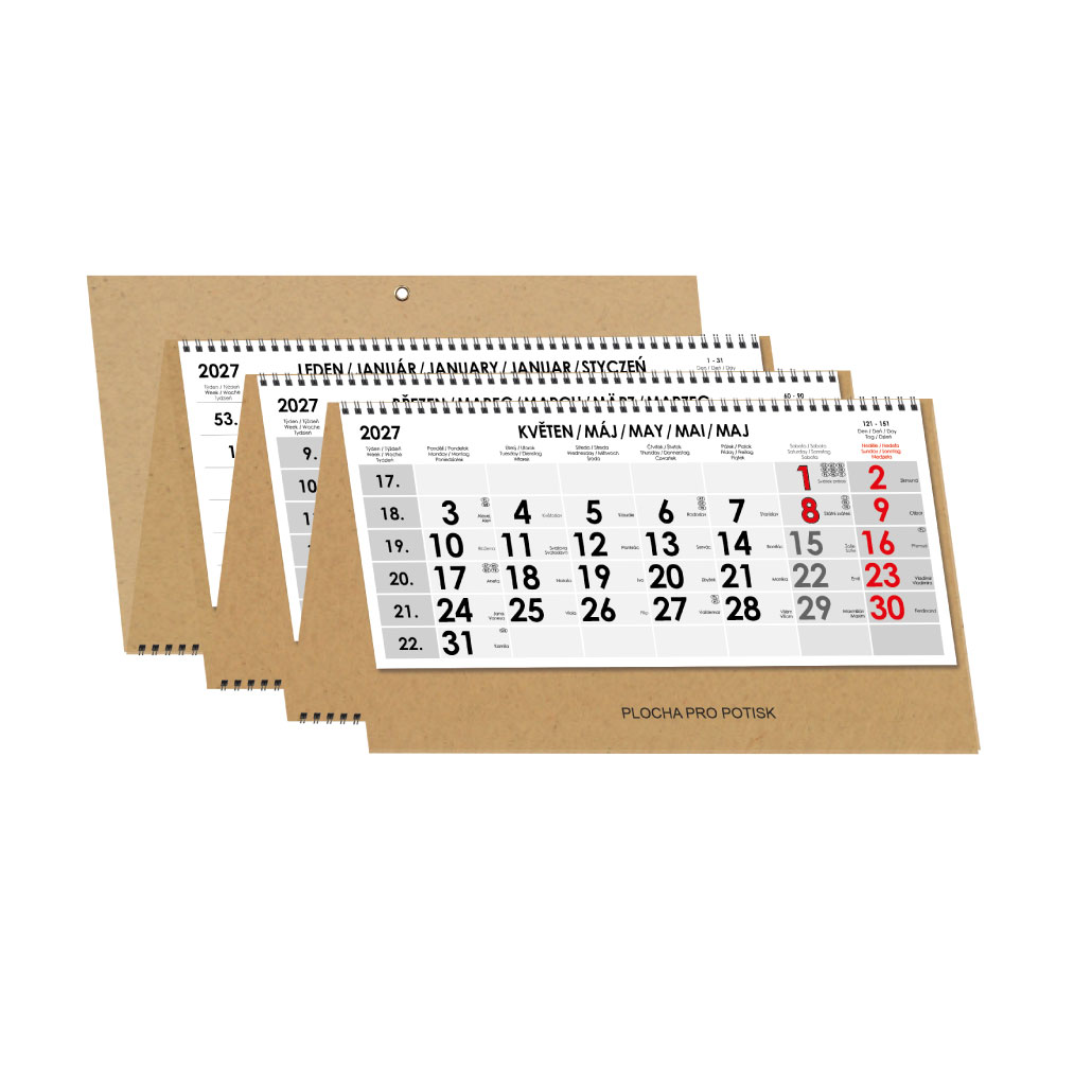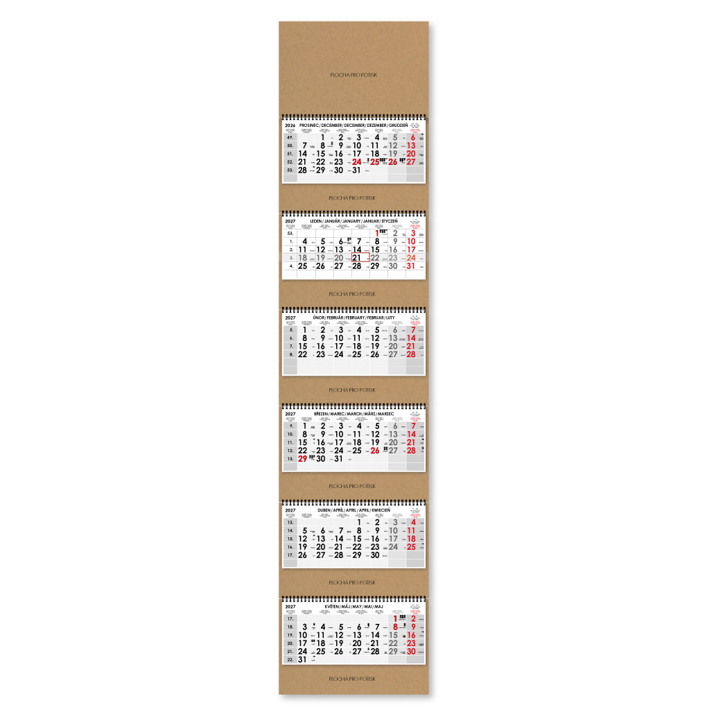 Šestiměsíční kalendář Sixto Kraft skládaný český se spirálou 2027 - šedý