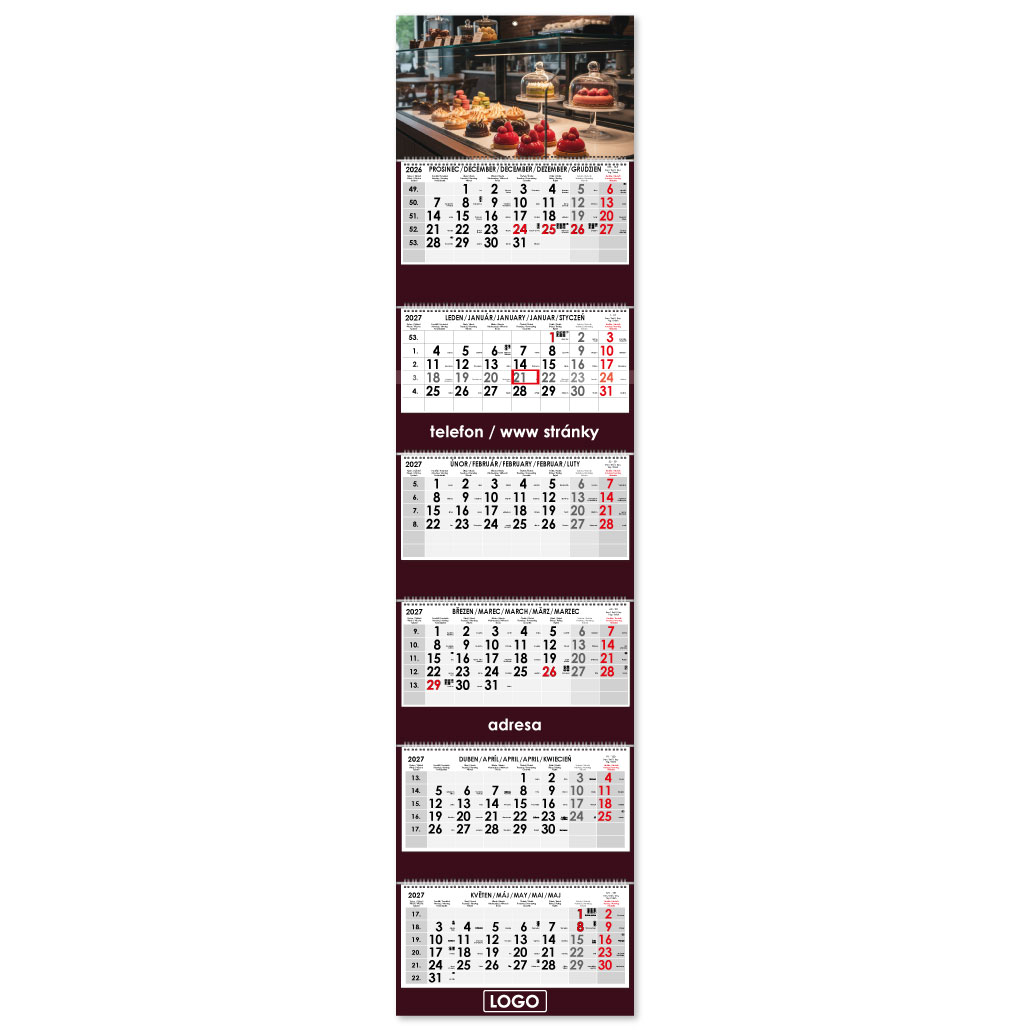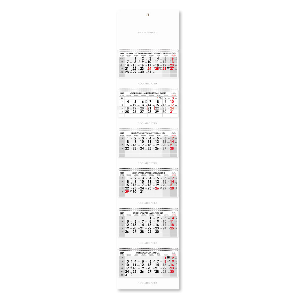 Formát kalendária: 295 x 135 mm