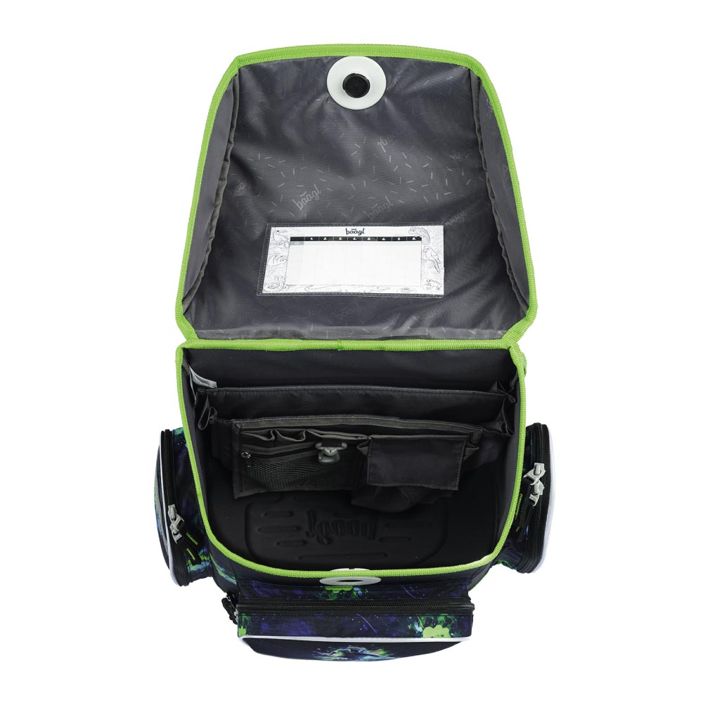 • Uvnitř aktovky je průhledná kapsa s rozvrhem a vnitřní organizér umožňující rovnoměrné rozložení hmotnosti.