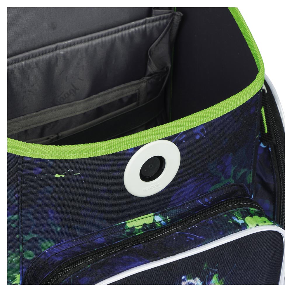 • Kvalitní magnetické zapínání Fidlock k otevření aktovky postačí pouhé otočení přezky a uzavření aktovky probíhá díky magnetickému systému automaticky, bez nutnosti manuálního zapínání.