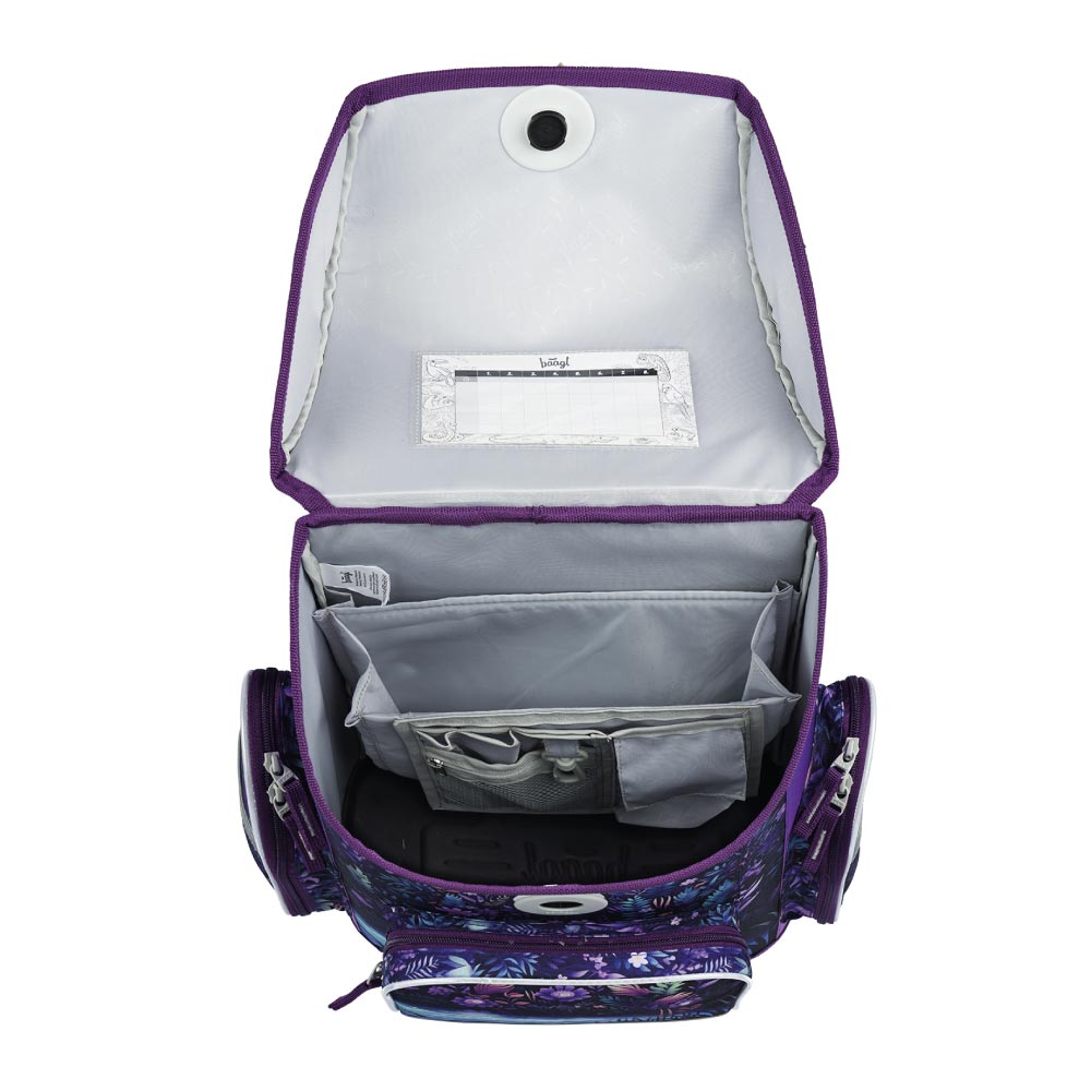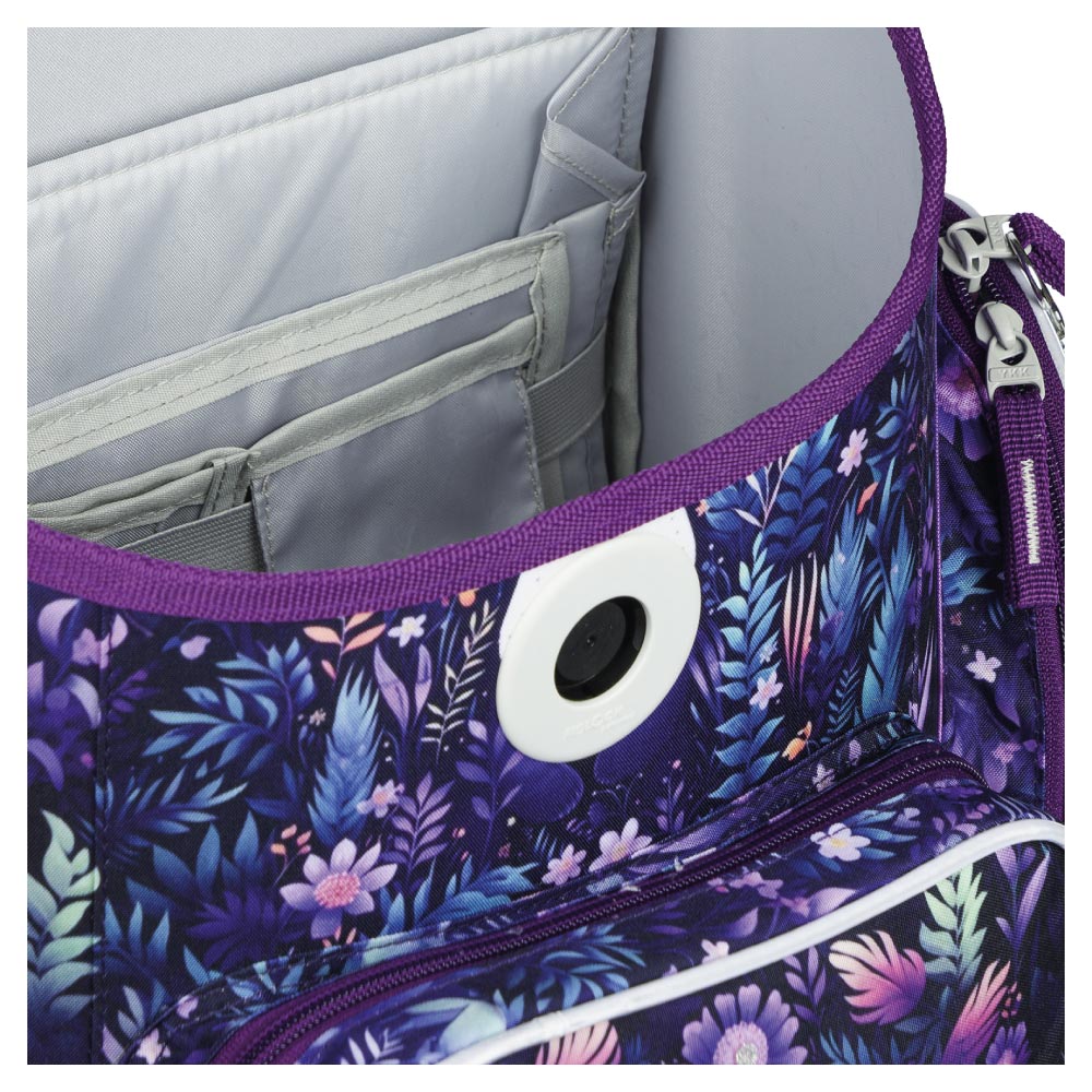 • Uvnitř aktovky je průhledná kapsa s rozvrhem a vnitřní organizér umožňující rovnoměrné rozložení hmotnosti.