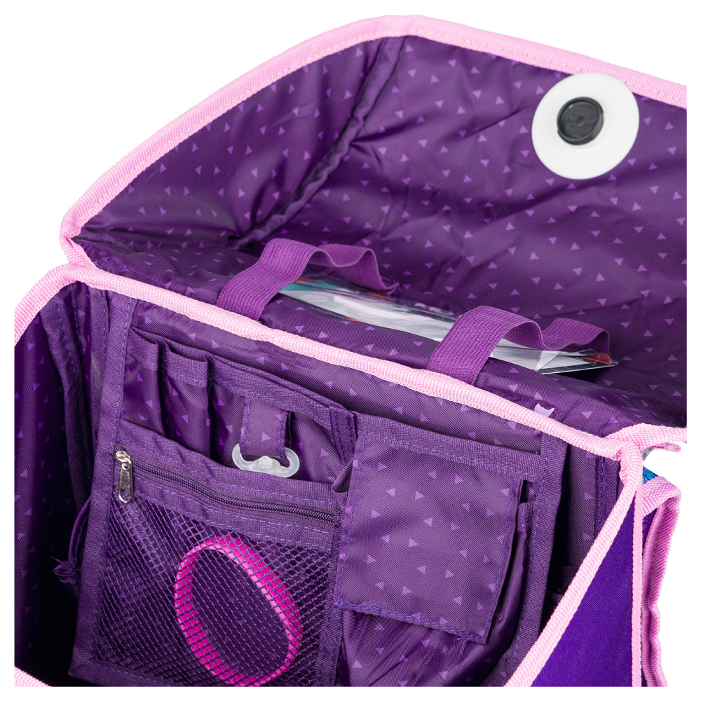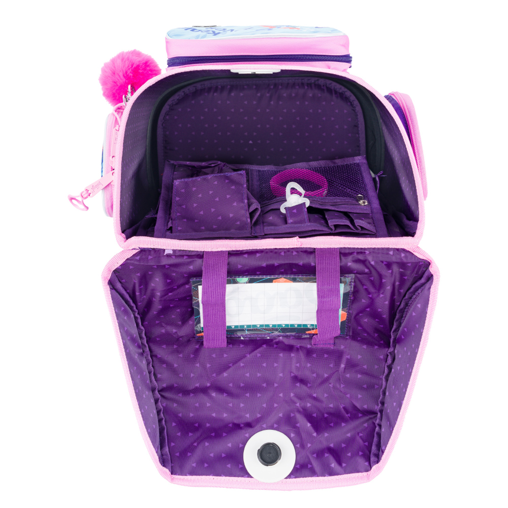 • Uvnitř aktovky je průhledná kapsa s rozvrhem a vnitřní organizér umožňující rovnoměrné rozložení hmotnosti.