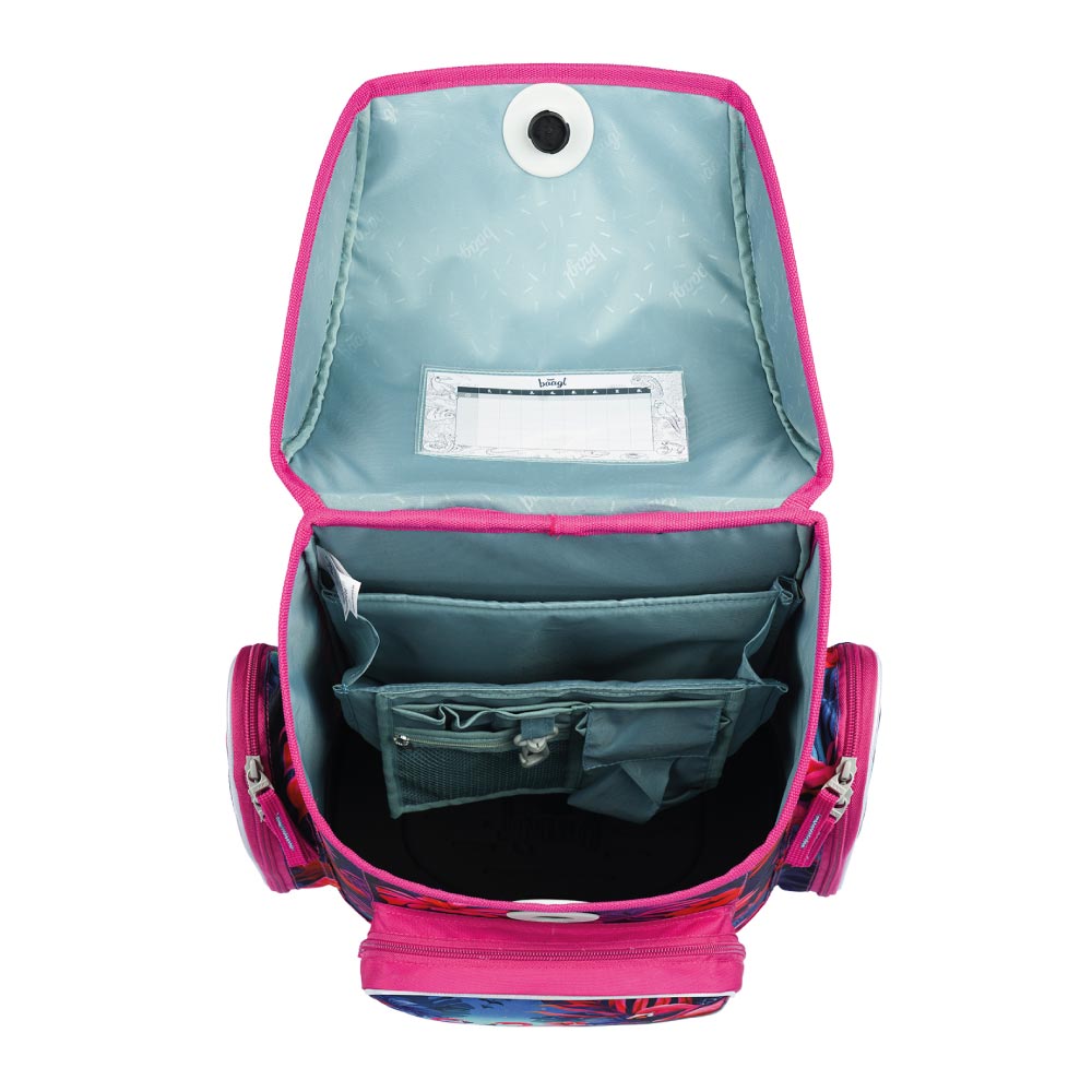• Uvnitř aktovky je průhledná kapsa s rozvrhem a vnitřní organizér umožňující rovnoměrné rozložení hmotnosti.