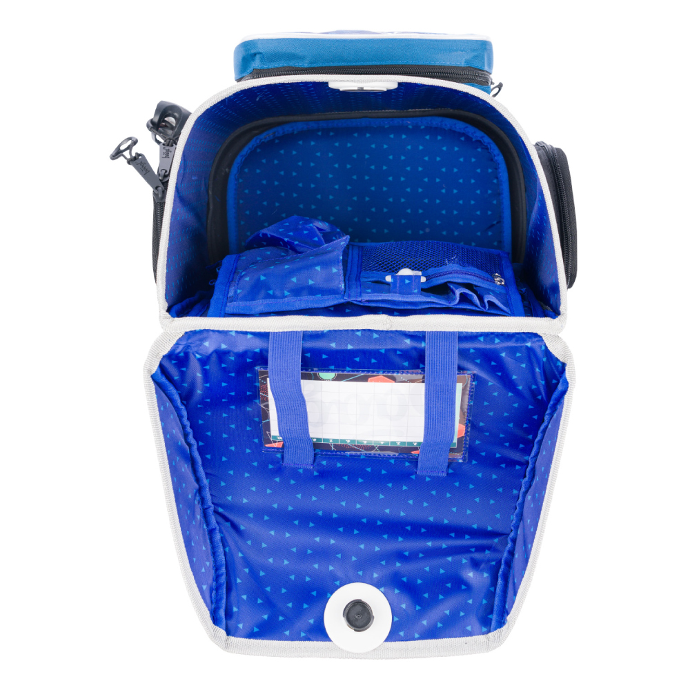 • Uvnitř aktovky je průhledná kapsa s rozvrhem a vnitřní organizér umožňující rovnoměrné rozložení hmotnosti.