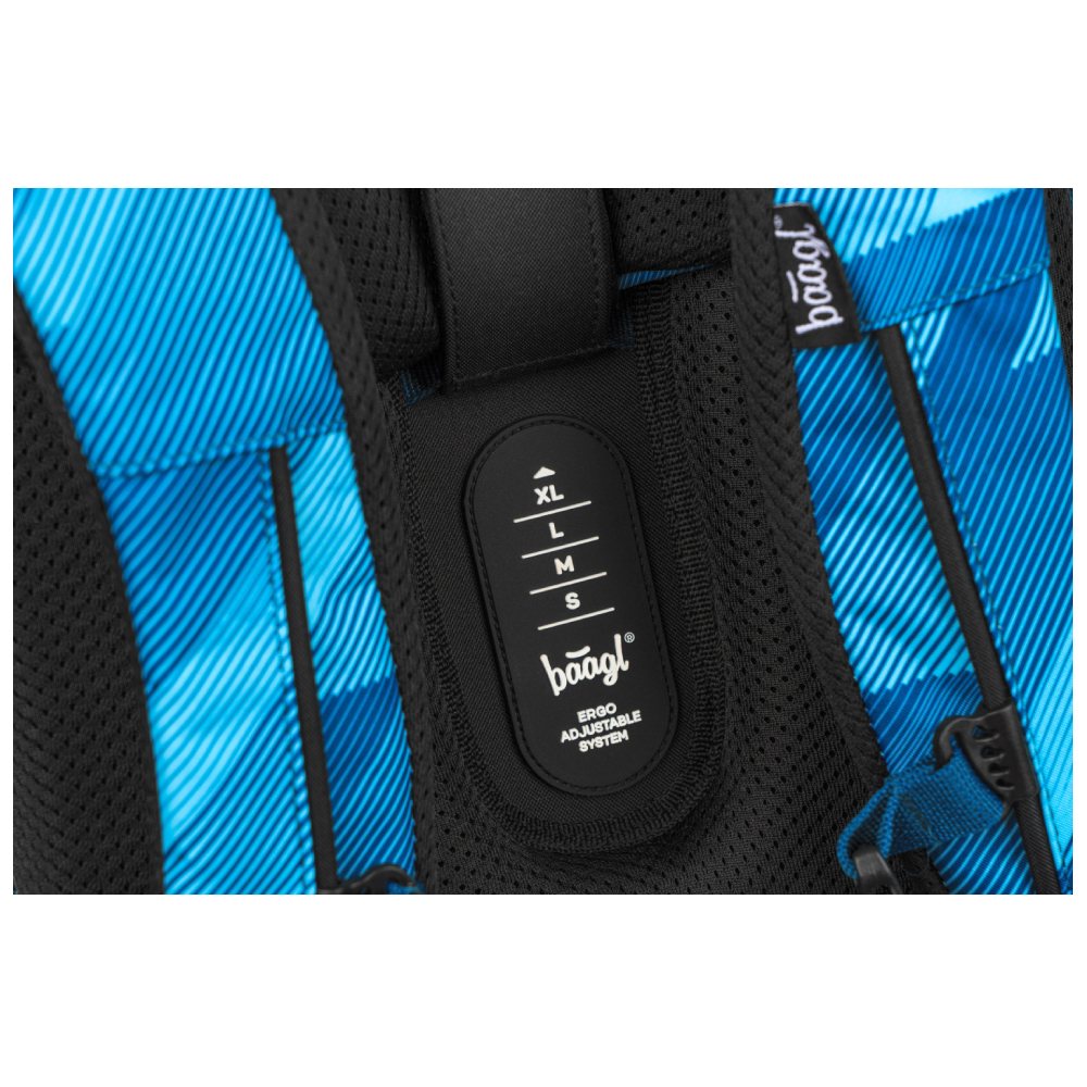 • Posuvný zádový systém BAAGL ADJUSTABLE SYSTEM umožňuje nastavení optimální polohy popruhů vzhledem k výšce dítěte.