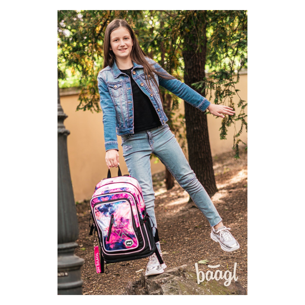 • Batoh je vybaven růžovým přívěskem na klíče s logem BAAGL.
