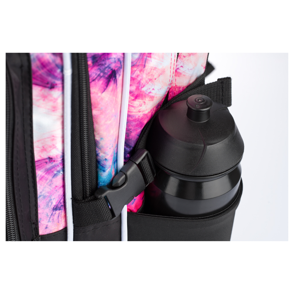 • Boční kapsy z elastického materiálu, které jsou vhodné pro jednu z našich láhví na pití.