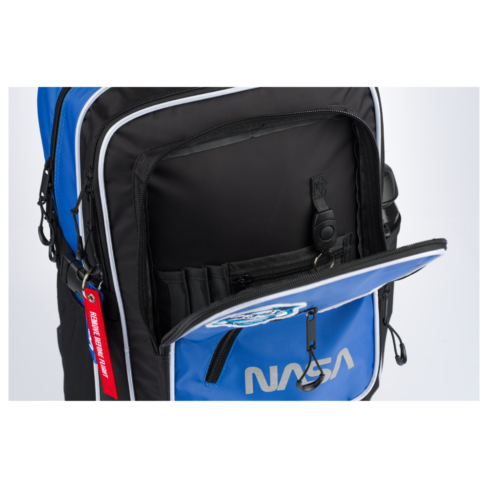 • Přední komora batohu obsahuje praktický organizér a také poutko s karabinou na zavěšení klíčů. Tuto karabinu je možné odepnout a používat samostatně.