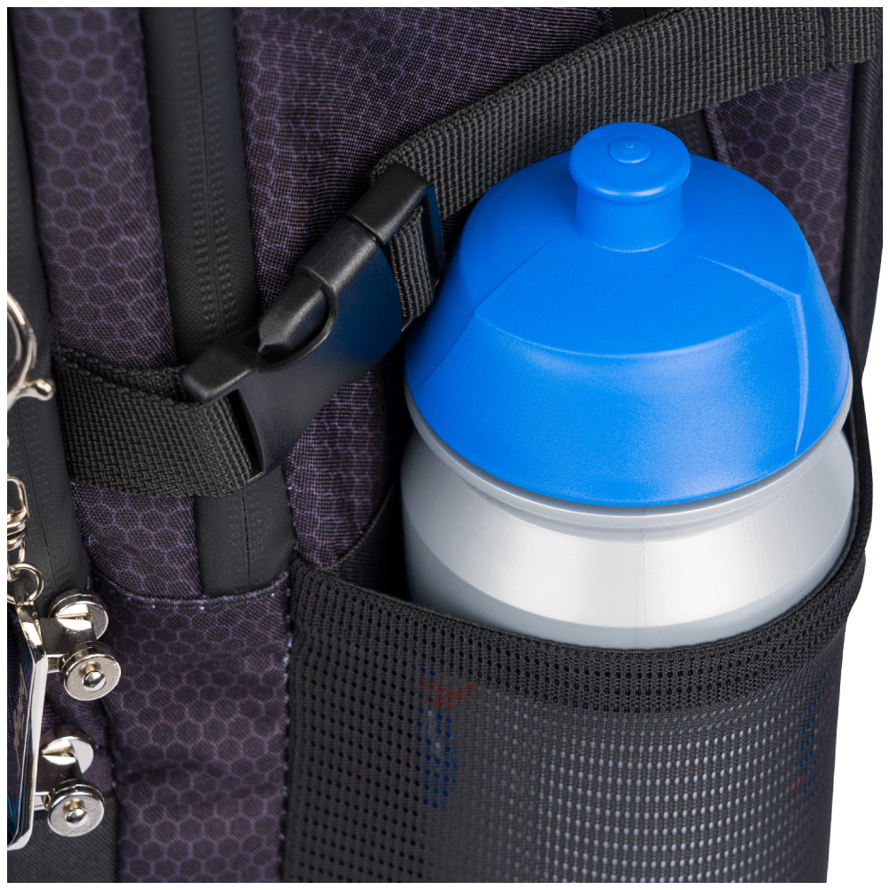 • Boční kapsy z pevné síťoviny, které jsou vhodné pro jednu z našich láhví na pití.