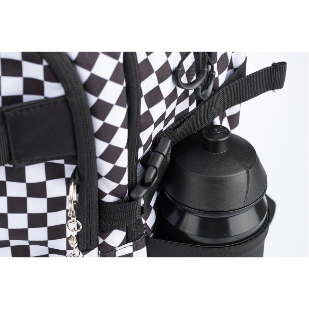• Boční kapsy z pevné síťoviny, které jsou vhodné pro jednu z našich láhví na pití.