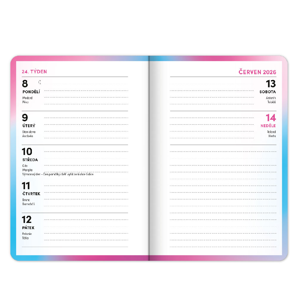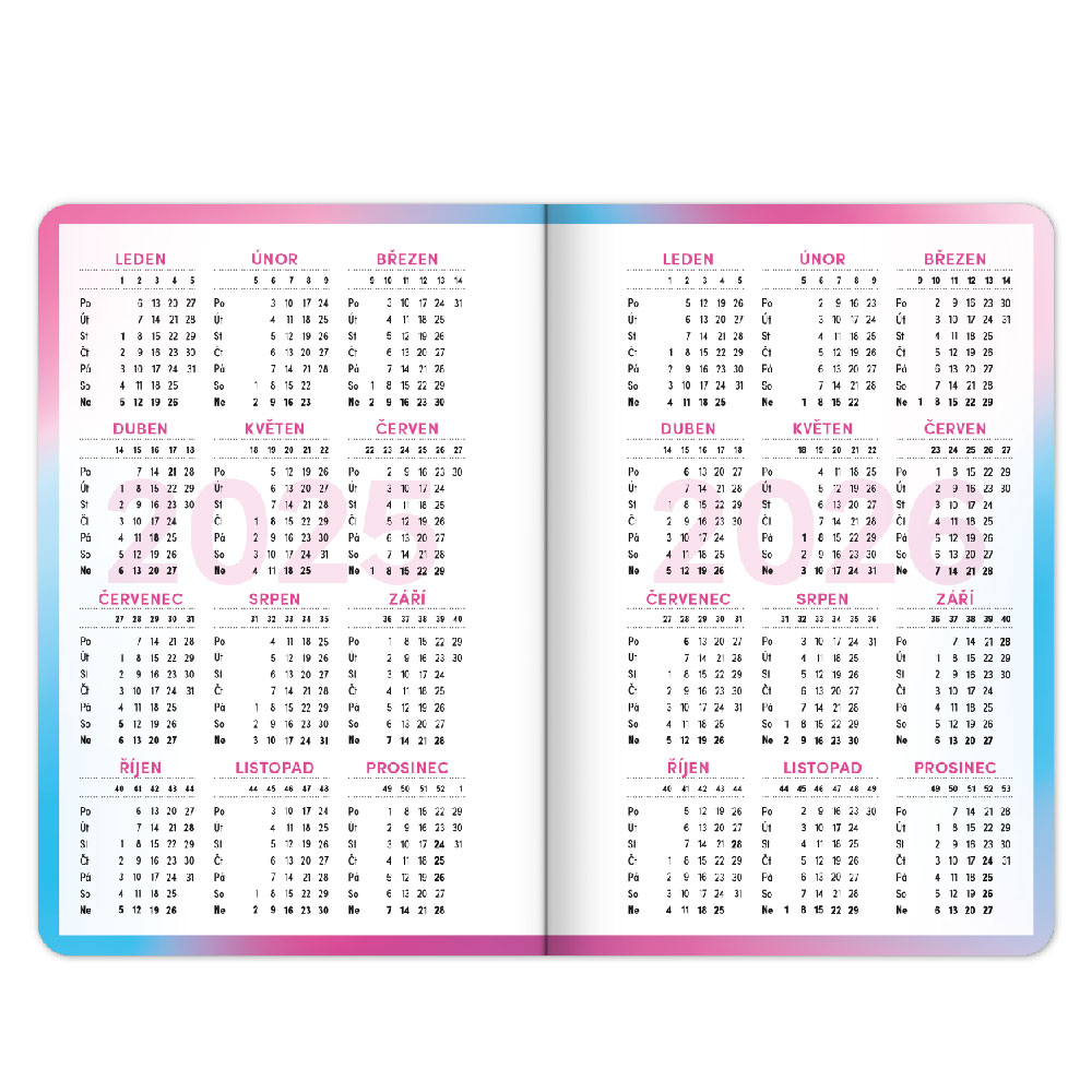 Školní diář - Růžová (září 2025 – prosinec 2026)