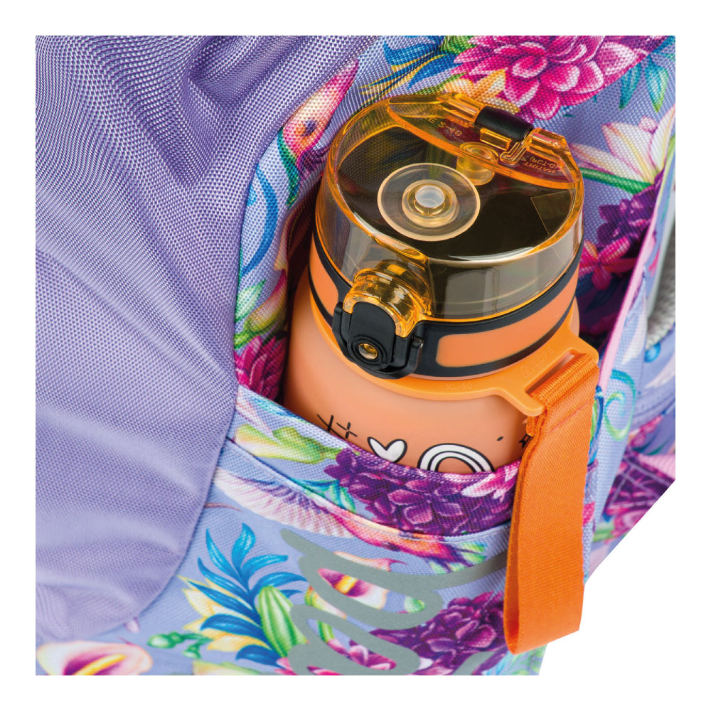 • Boční kapsy z elastického materiálu, které jsou vhodné pro jednu z našich láhví na pití.