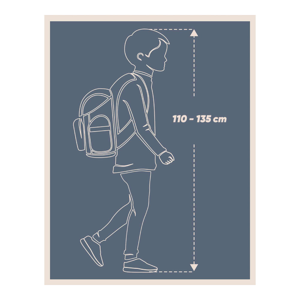 • Zádový systém se skvěle přizpůsobí postavě školáka. Je navržen tak, aby podporoval zdravý vývoj dítěte a bylo zajištěno dostatečné proudění vzduchu podél páteře.