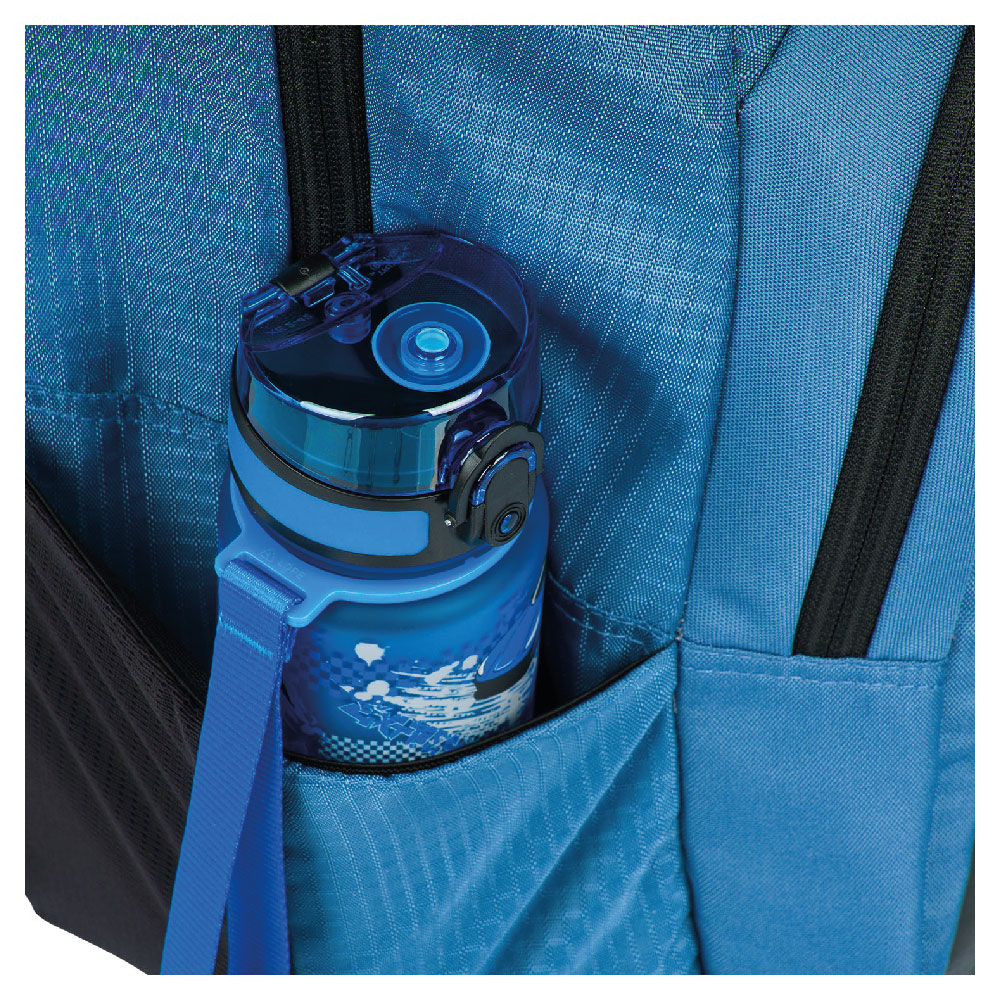 • Boční kapsy z elastického materiálu, které jsou vhodné pro jednu z našich láhví na pití.