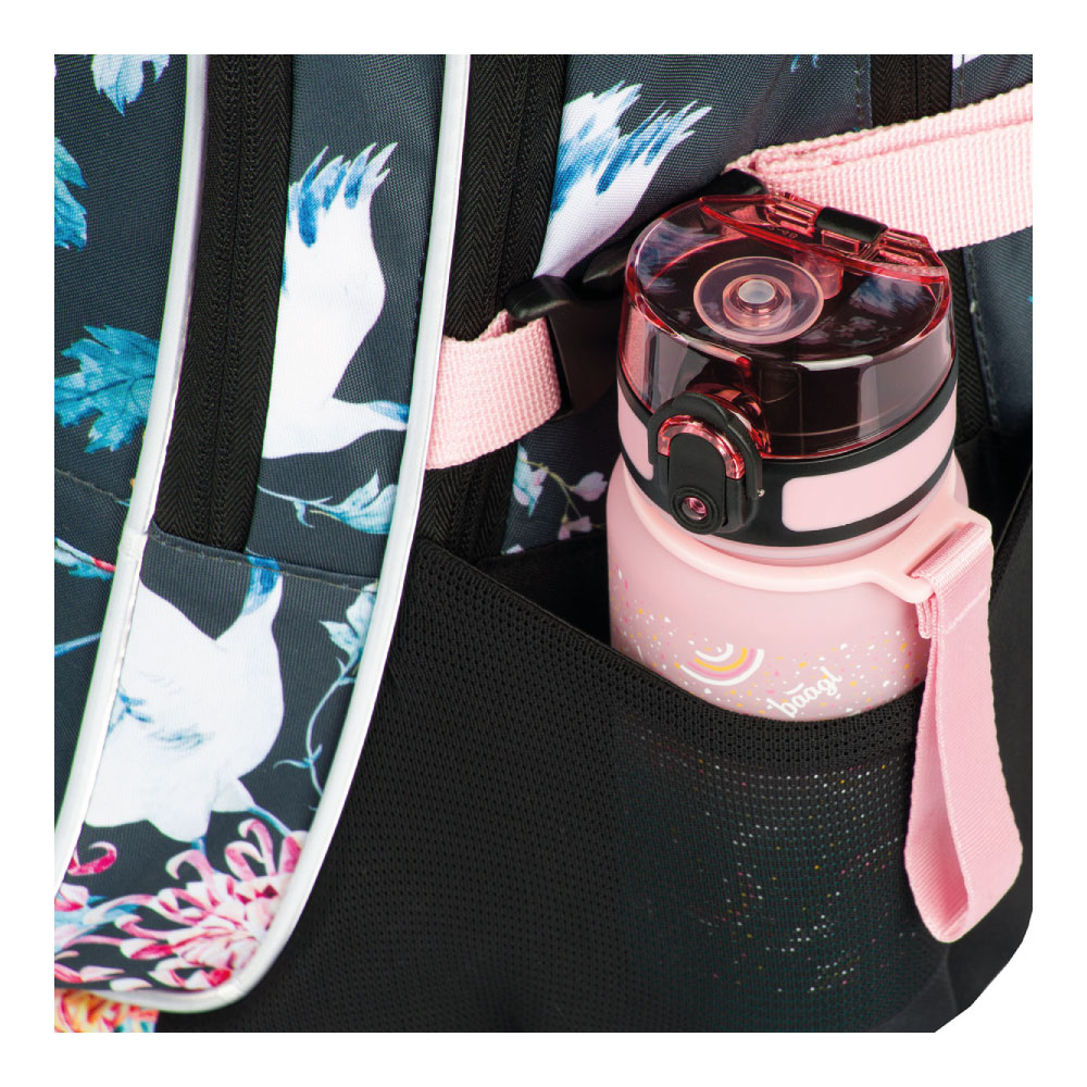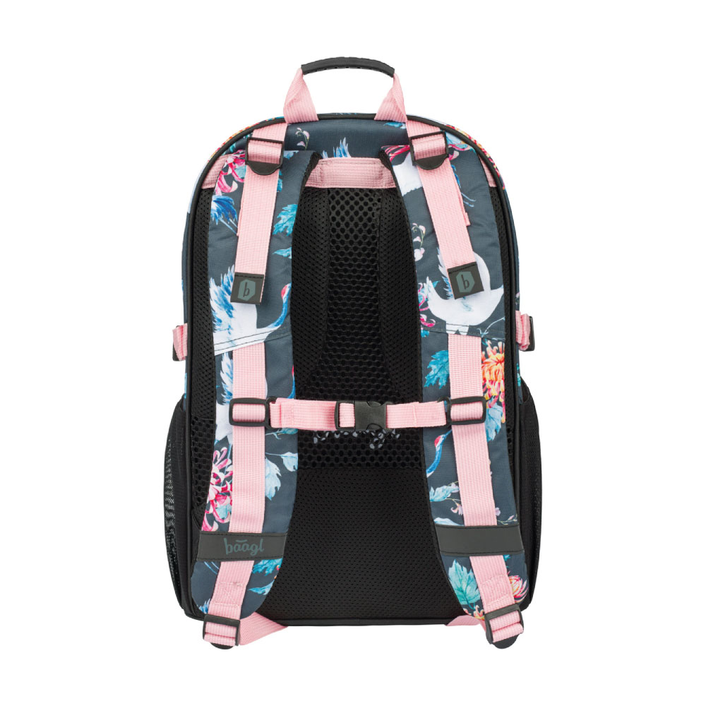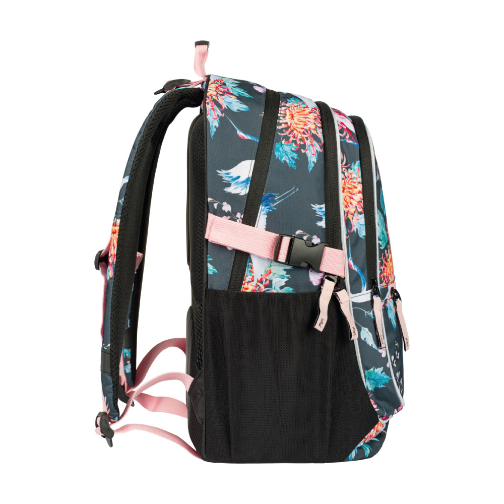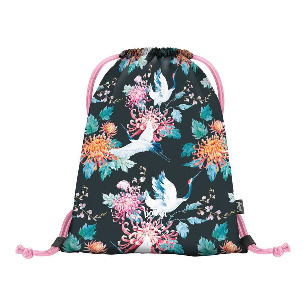 Dívčí školní set s něžným potiskem volavek a květin. Tento set je vhodný od 3. třídy ZŠ. Tento set obsahuje batoh, penál a sáček na tělocvik.