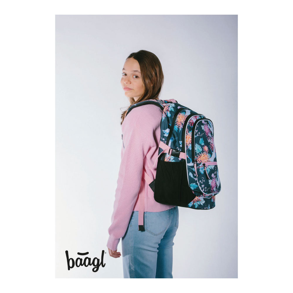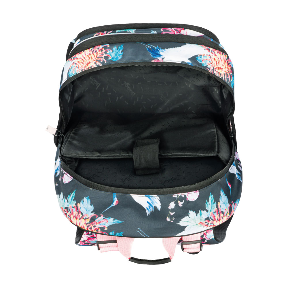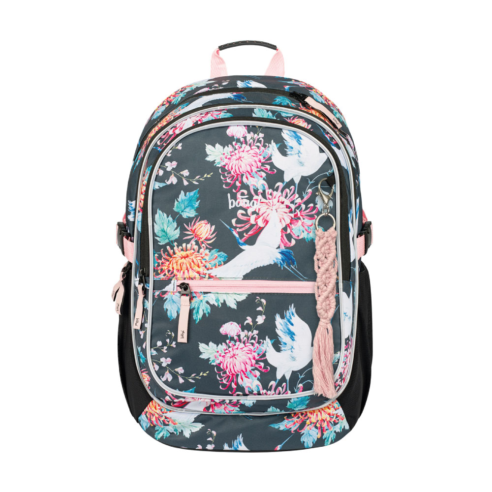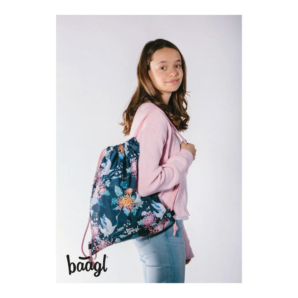 Dívčí školní set s něžným potiskem volavek a květin. Tento set je vhodný od 3. třídy ZŠ. Tento set obsahuje batoh, penál a sáček na tělocvik.