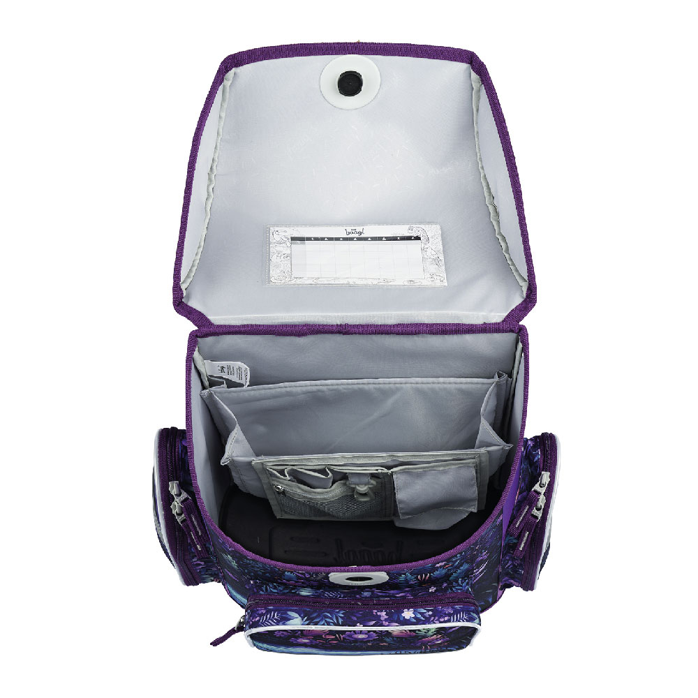 • Uvnitř aktovky je průhledná kapsa na rozvrh a vnitřní organizér umožňující rovnoměrné rozložení hmotnosti.